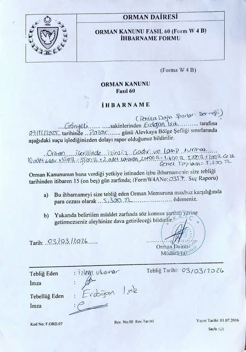 Işık, Orman Dairesi memurları tarafından kamp ücretini ödemedikleri için kendilerine ihbarname tebliğ edildiğini, 15 gün içinde ödeme yapılmazsa dava edileceklerinin bildirildiğini aktardı.