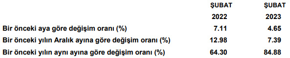 Buna göre, enflasyon şubatta aylık bazda yüzde 4,65 artarken, yıllık bazda yüzde 84.88 oldu.
