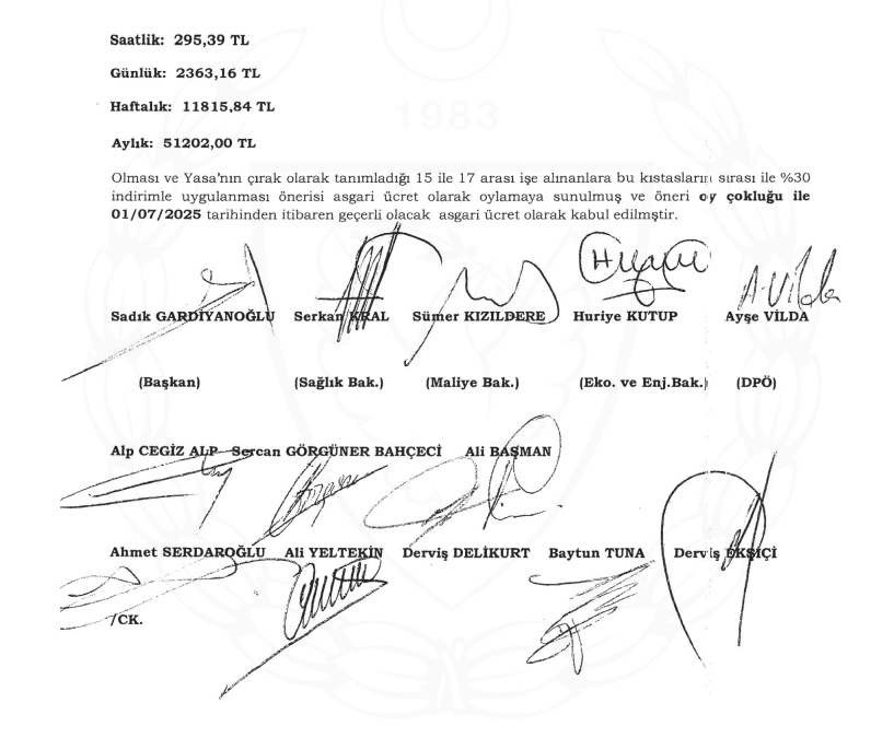 Asgari Ücret Saptama Komisyonu, 2025 yılının ikinci asgari ücretini belirlemek amacıyla 16 Temmuz'da başladığı çalışmalarını, 21 Temmuz 2025’teki üçüncü toplantısıyla tamamladı.