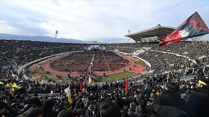 Lübnan'ın başkenti Beyrut'ta Kamil Şamun stadyumunda "Ahde bağlıyız" sloganıyla düzenlenen cenaze törenine, Lübnan'dan ve yurtdışından yüzbinlerce kişi katıldı.