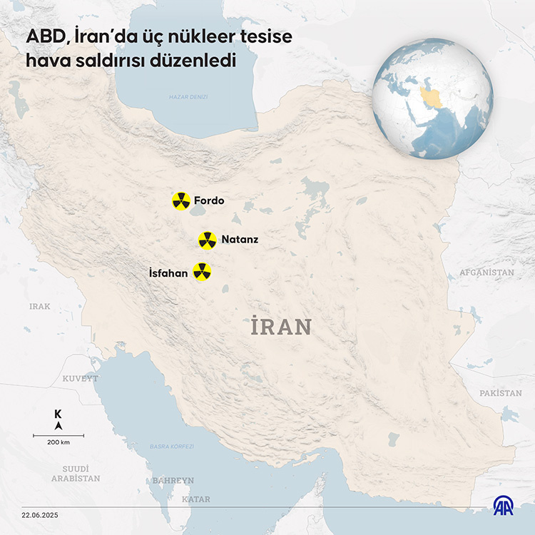ABD, İran'daki üç nükleer tesisine saldırı düzenledi. İran'ın kilit nükleer zenginleştirme tesislerinin "tamamen yok edildiğini" söyleyen Başkan Trump, "Herhangi misilleme, bundan çok daha büyük bir güçle karşılanacak." dedi.