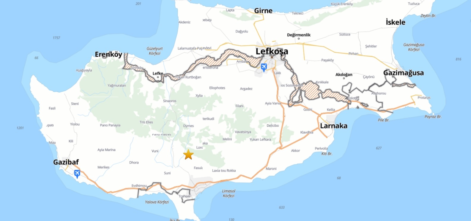 Philenews'teki habere göre Avrupa-Akdeniz Enstitüsü, depremin merkez üssünü Lefkoşa'nın 28 kilometre güneybatısı olarak açıkladı.