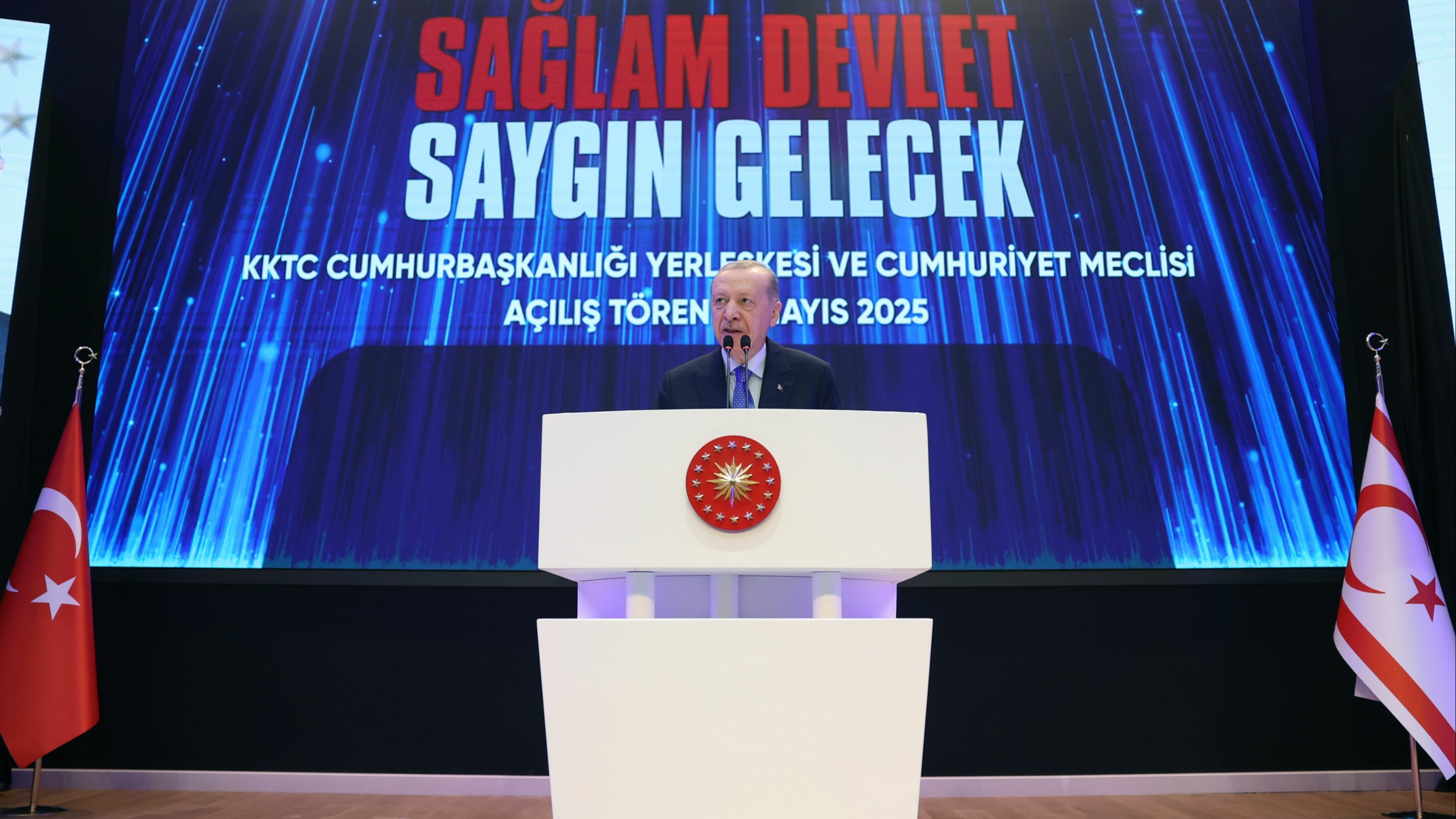 Cumhurbaşkanlığı Yerleşkesi ve Cumhuriyet Meclisi Açılış Töreni'nde konuşan TC Cumhurbaşkanı Recep Tayyip Erdoğan, "Adlarımız farklı olsa da söz konusu Kıbrıs davası olunca, soyadımız Kuzey Kıbrıs Türk Cumhuriyeti'dir." dedi.