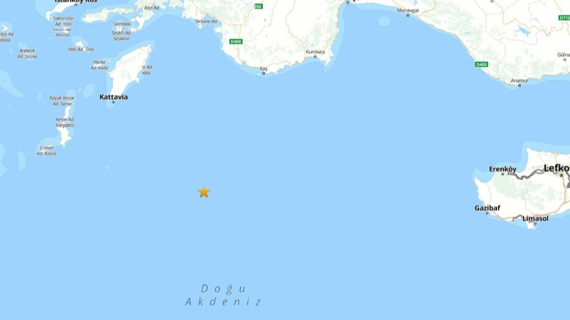 Antalya'nın Kaş ilçesi açıklarında KKTC saati ile 07.35'te 4.5 büyüklüğünde deprem meydana geldi.