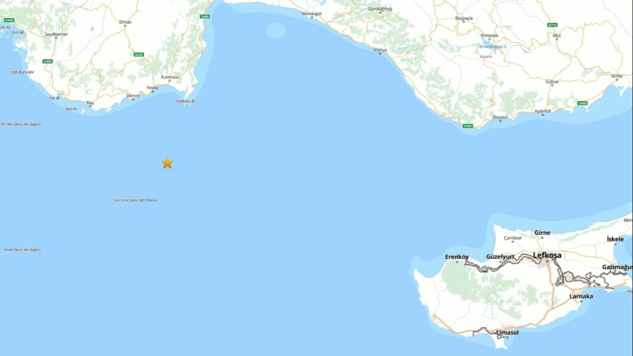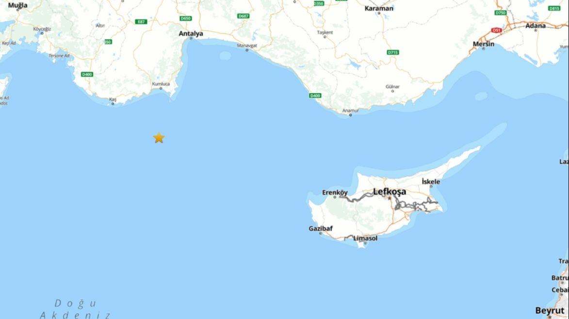 Akdeniz'de sabah 5 dakika arayla 3.5 ve 4.7 büyüklüğünde iki deprem kaydedildi.