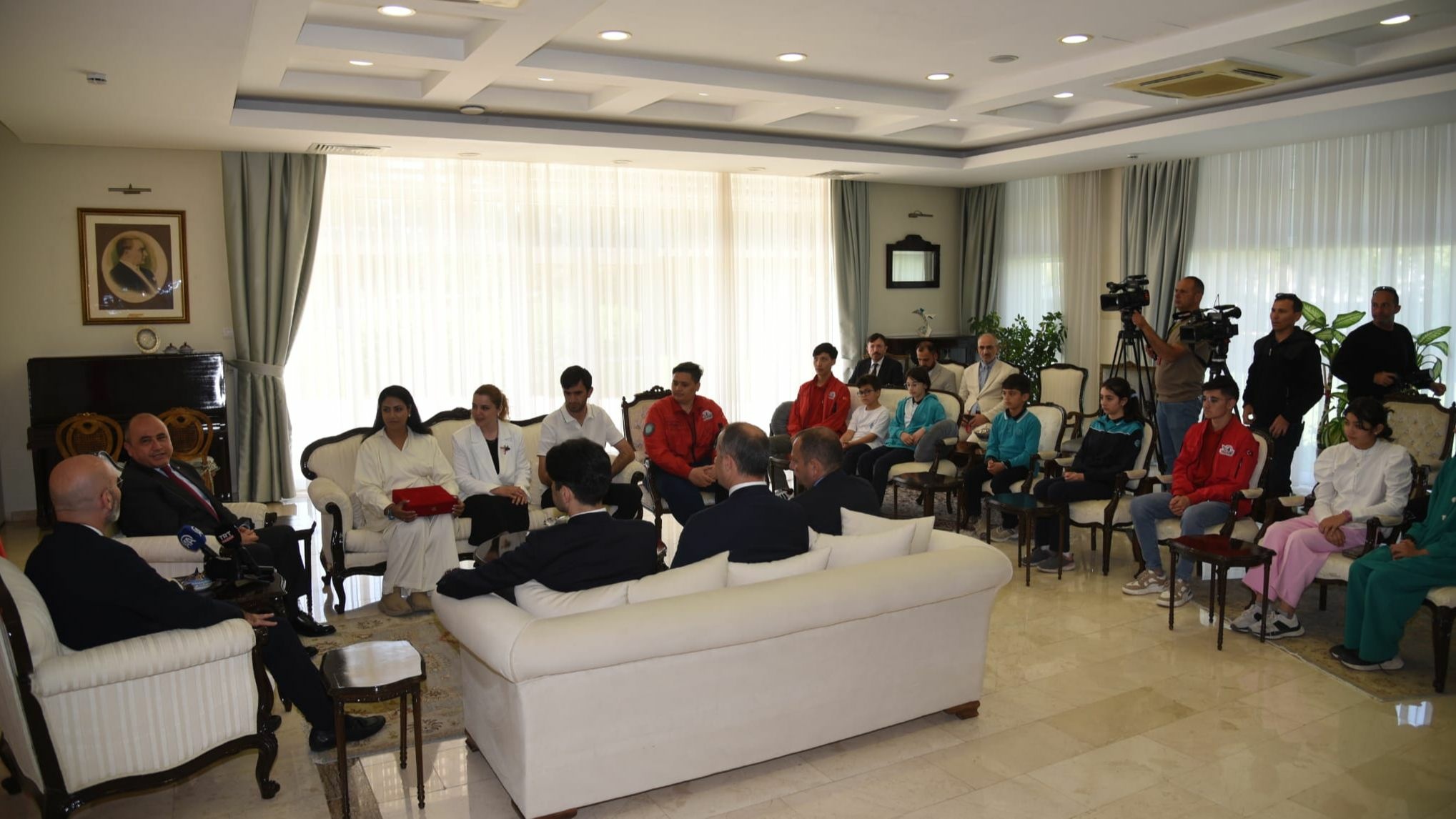 Türkiye Cumhuriyeti (TC) Lefkoşa Büyükelçisi Ali Murat Başçeri, Türkiye Maarif Vakfı Başkanı Mahmut Özdil ile Pakistan, Azerbaycan ve Afganistan'daki vakfa bağlı okullardan gelen öğrencileri kabul etti.