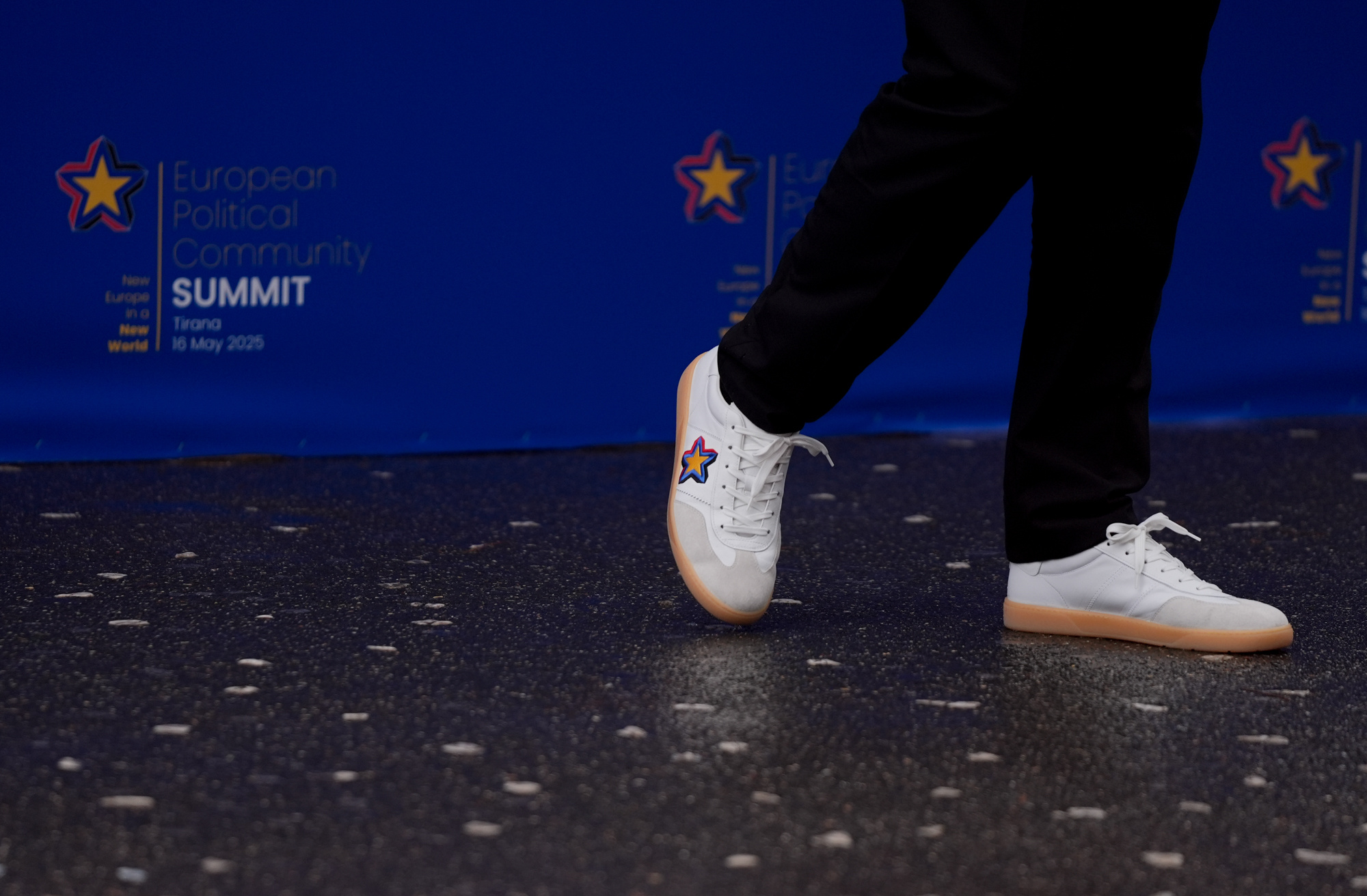 Arnavutluk'un Tiran kentinde düzenlenen Avrupa Siyasi Topluluğu Zirvesi’ne katılan devlet liderlerini kırmızı halıda karşılayan Arnavutluk Başbakanı Edi Rama'nın beyaz spor ayakkabıları dikkati çekti. Rama, Meloni'yi de dizleri üstünde karşıladı.