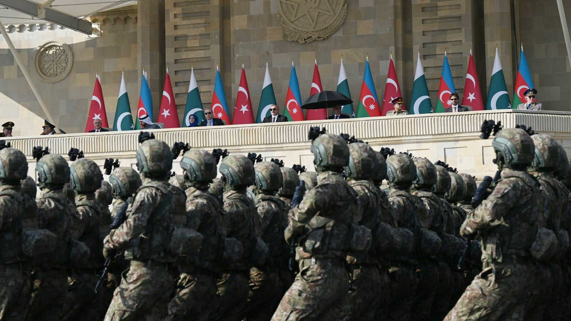 Aliyev, Pakistan Devleti ve halkının 2'nci Karabağ Savaşı’nda Azerbaycan’a destek verdiğini hatırlatarak, "Törende Pakistan askerleri de bulunuyor. Bu, üç ülkenin ordularının birliğinin tezahürüdür." değerlendirmesinde bulundu.