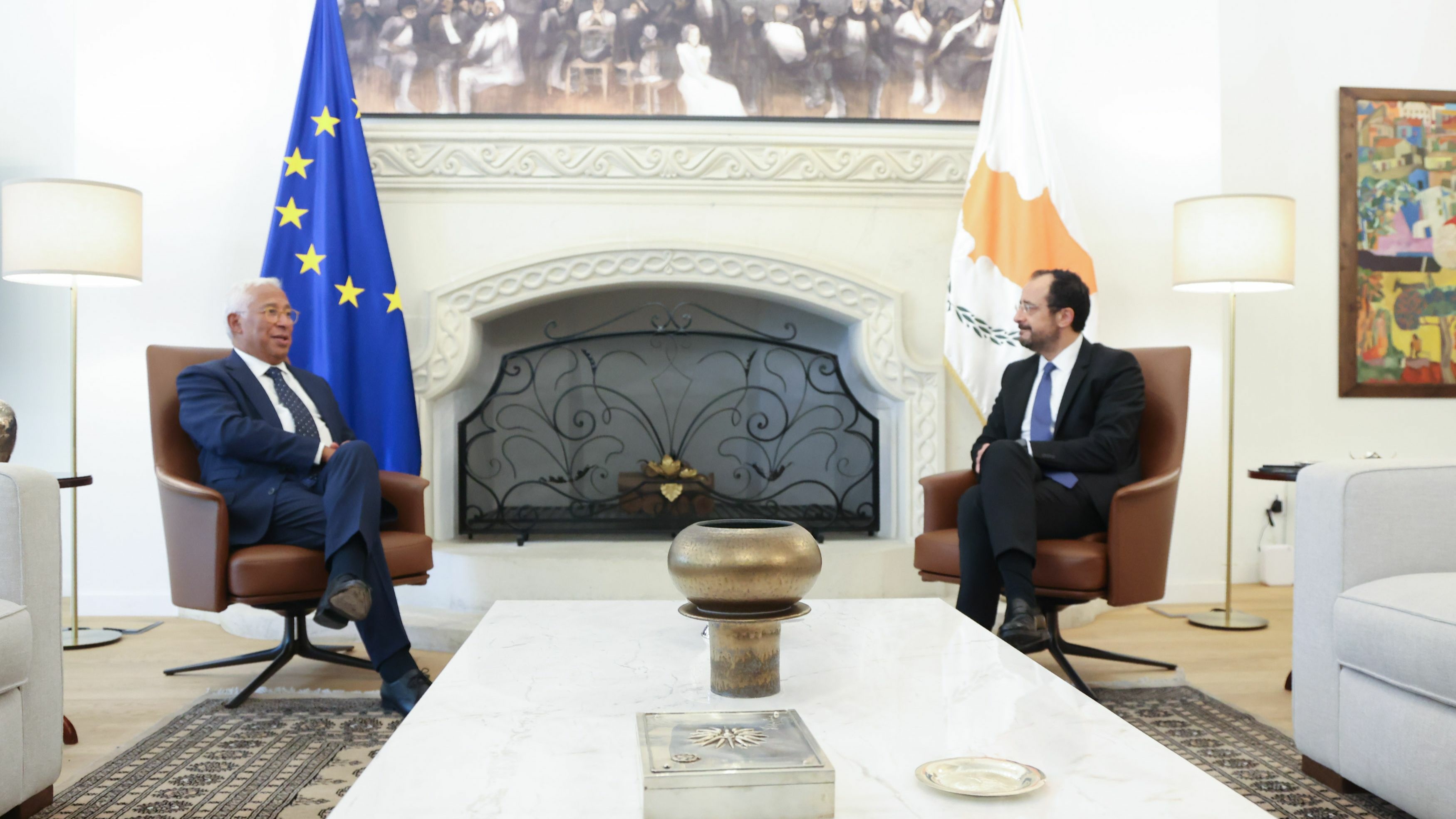 Güney Kıbrıs Rum Yönetimi Başkanı Nikos Hristodulidis, Avrupa Birliği (AB) başkentlerini ziyareti kapsamında Güney Kıbrıs'a gelen Avrupa Konseyi Başkanı António Costa'yı kabul etti.