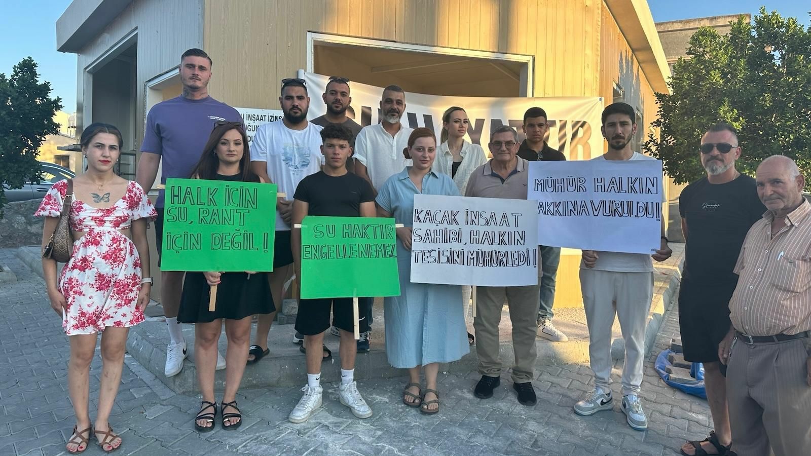 Protesto sırasında yapılan açıklamada, Lefkoşa Kaymakamı'nın, tesisin inşaat izni olmadığı gerekçesiyle projeyi durdurduğu, ancak kendisine ait olduğu iddia edilen ve Girne Kaymakamlığı tarafından mühürlenmiş bir izinsiz yapının da bulunduğu iddia edildi.