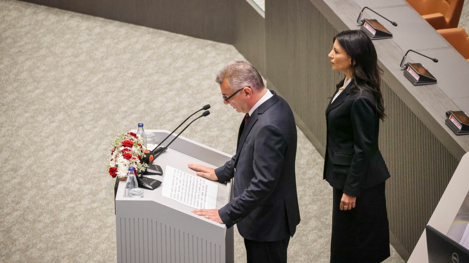 Tören için Meclis bahçesindeki bayrağa Cumhurbaşkanlığı forsu asıldı. Töreni ülkeden ve Türkiye’den çok sayıda basın mensubu izledi.