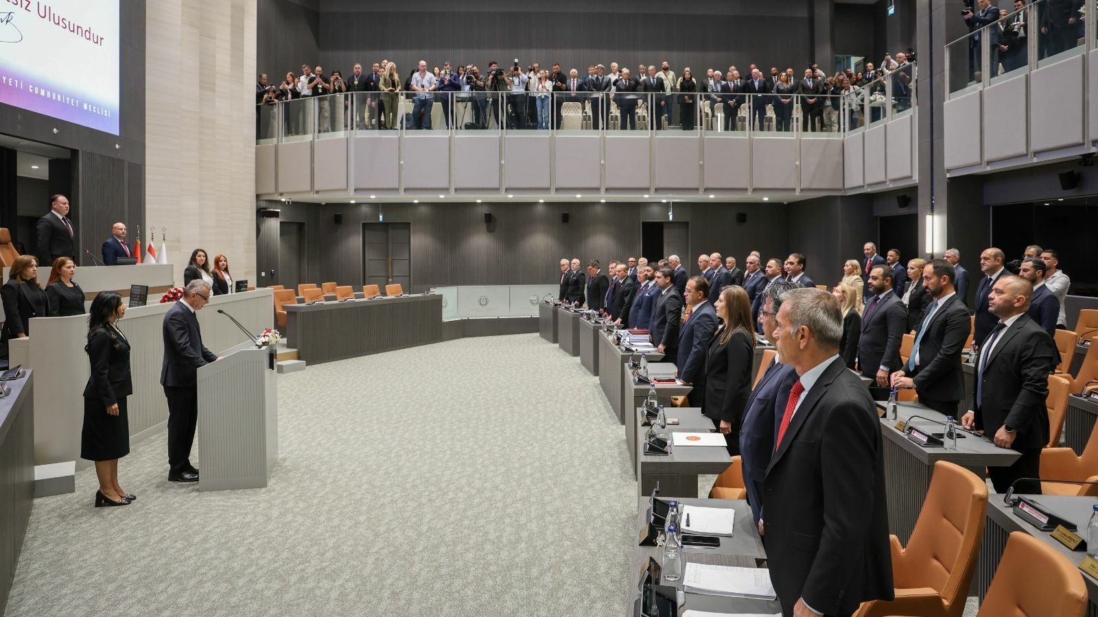 Cumhuriyet Meclisi Genel Kurulu, Cumhurbaşkanı seçilen Tufan Erhürman'ın Cumhurbaşkanı Yemin Töreni için Ziya Öztürkler başkanlığında olağanüstü toplandı.