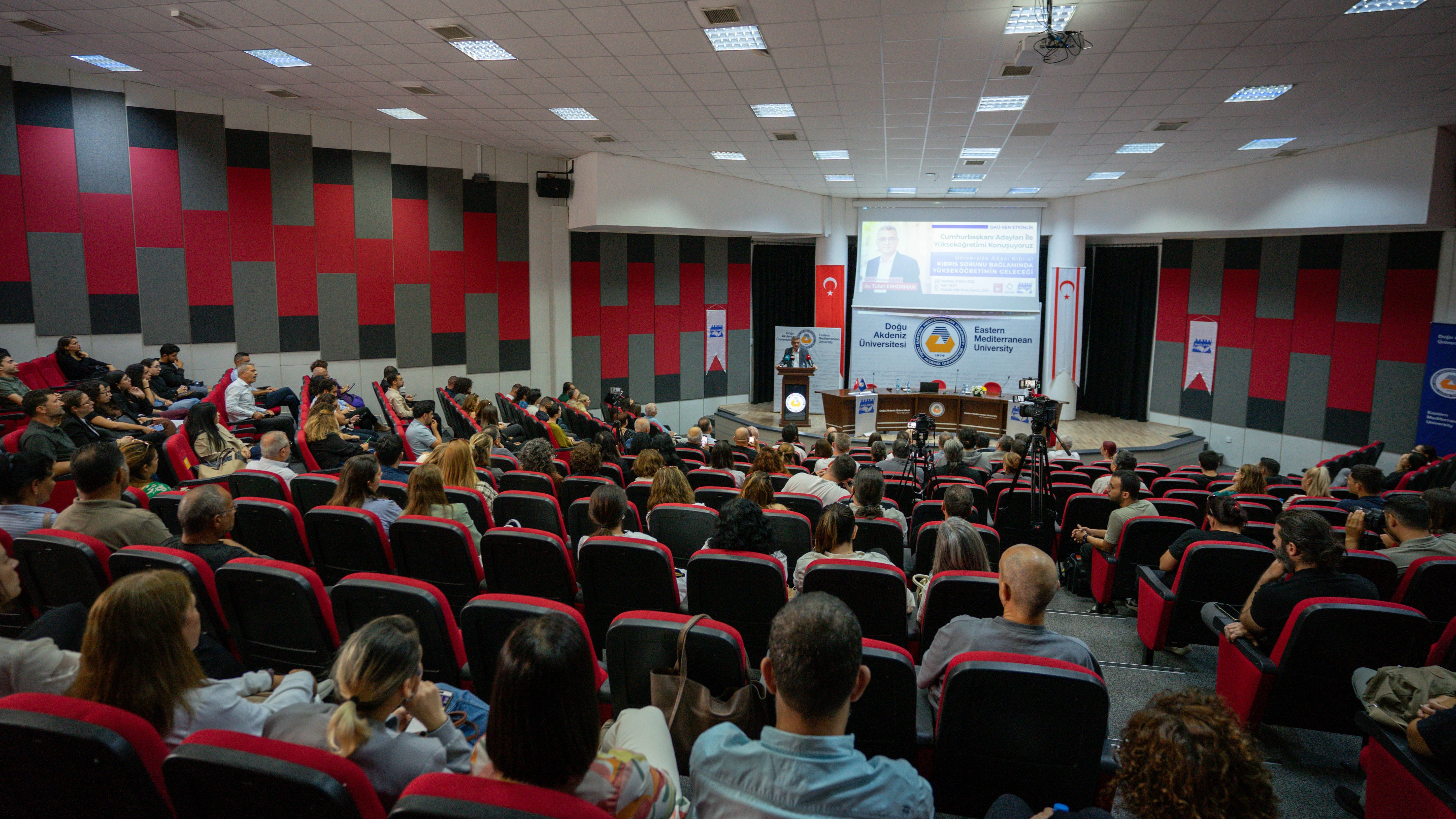 Cumhuriyetçi Türk Partisi (CTP) Genel Başkanı ve cumhurbaşkanı adayı Tufan Erhürman, Doğu Akdeniz Üniversitesi Akademik Personel Sendikası (DAÜ-SEN) tarafından düzenlenen “Cumhurbaşkanı Adayları ile Yükseköğretimi Konuşuyoruz” etkinliğinde akademisyenler ve öğrencilerle bir araya geldi.