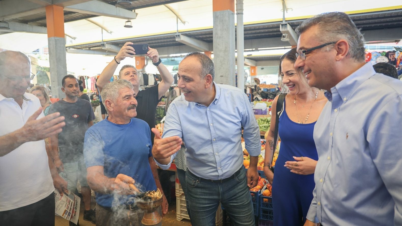 Cumhuriyetçi Türk Partisi (CTP) Genel Başkanı ve Cumhurbaşkanı adayı Tufan Erhürman, dün Merkez Lefkoşa'da kurulan Lefkoşa Açık Pazarı'nı ziyaret etti.