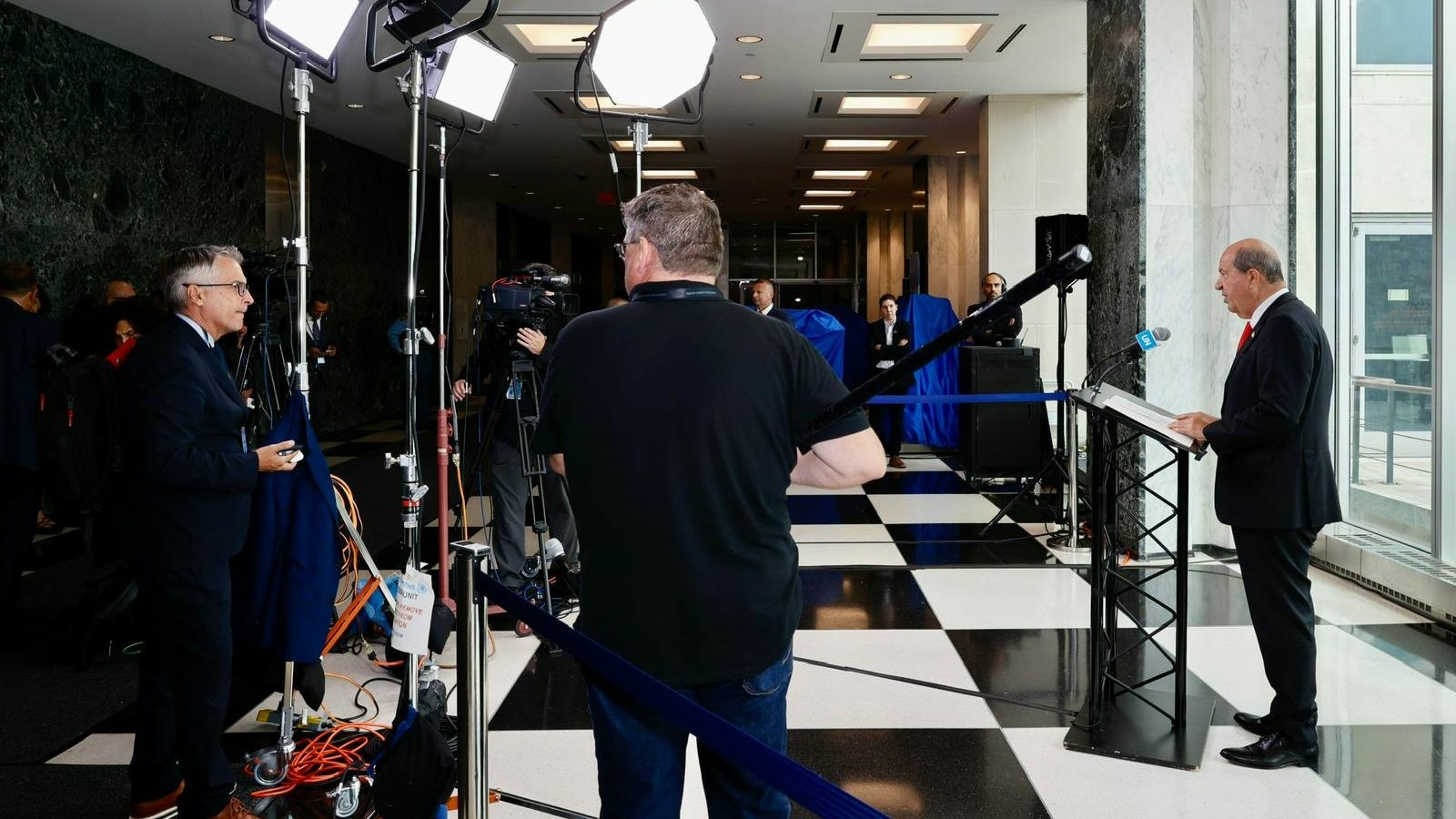 New York'taki BM Genel Merkezi'nde gerçekleşen görüşmenin ardından basına açıklama yapan Cumhurbaşkanı Ersin Tatar, Kıbrıs konusunun yanı sıra yeni geçiş kapılarının açılmasıyla ilgili değerlendirmeler yapıldığını söyledi.