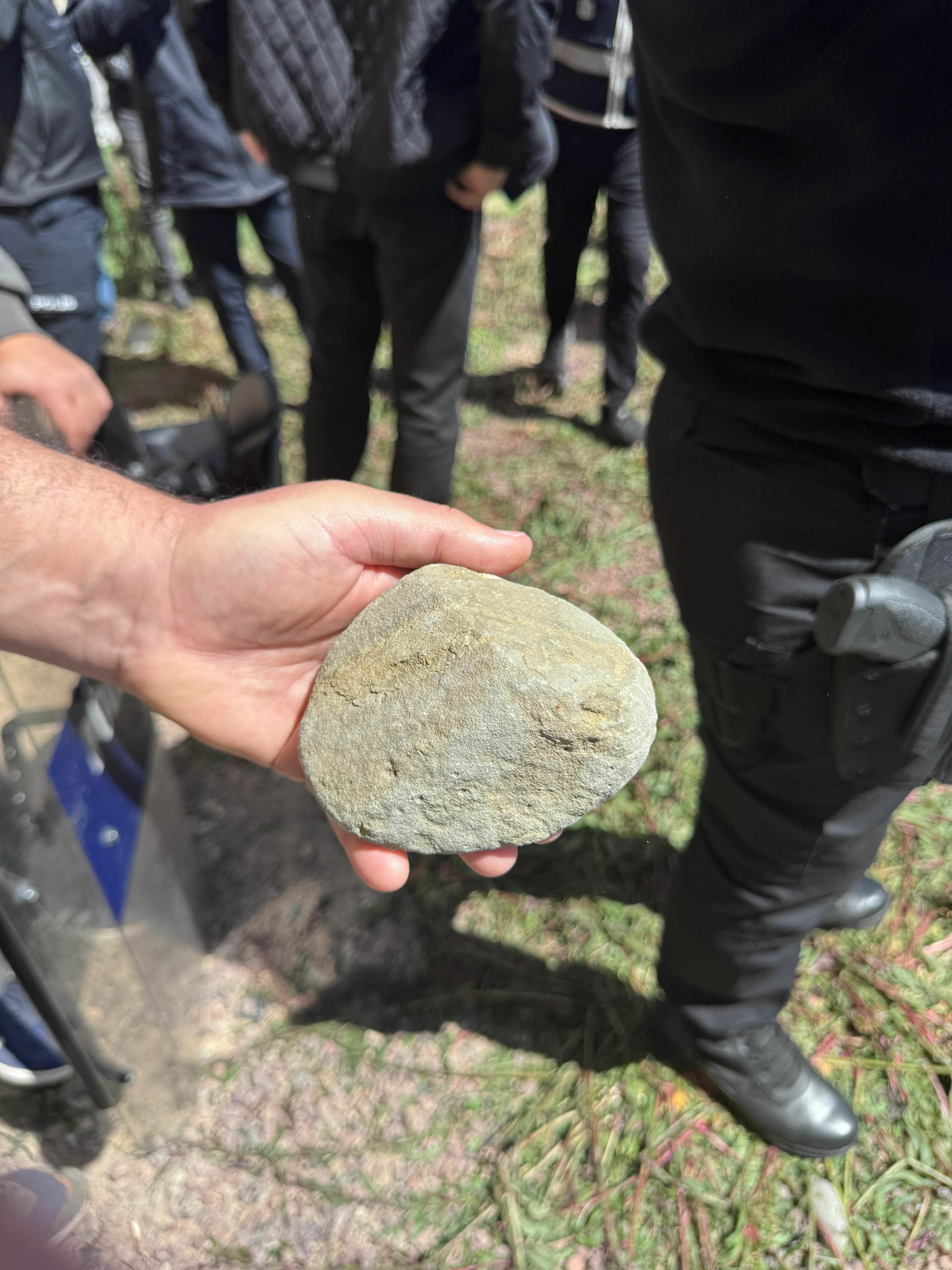 Eylemciler tarafından atılan taşların bazıları pencerelere, bazıları arabalara, bazıları ise sahada görev yapanlara isabet etti.