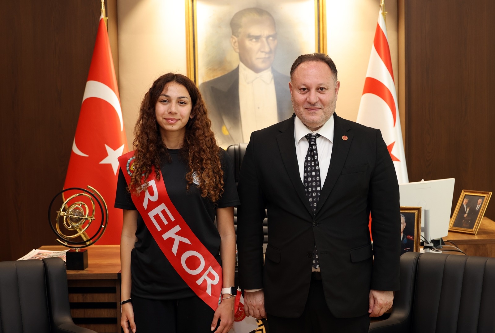 Kafa’nın daha önce verdiği sözleri yerine getirerek rekorlarına yenilerini eklediğini ifade eden Öztürkler, genç sporcunun hem Kuzey Kıbrıs Türk Cumhuriyeti’ni hem de Türkiye’yi temsil ederek önemli başarılara imza attığını söyledi.