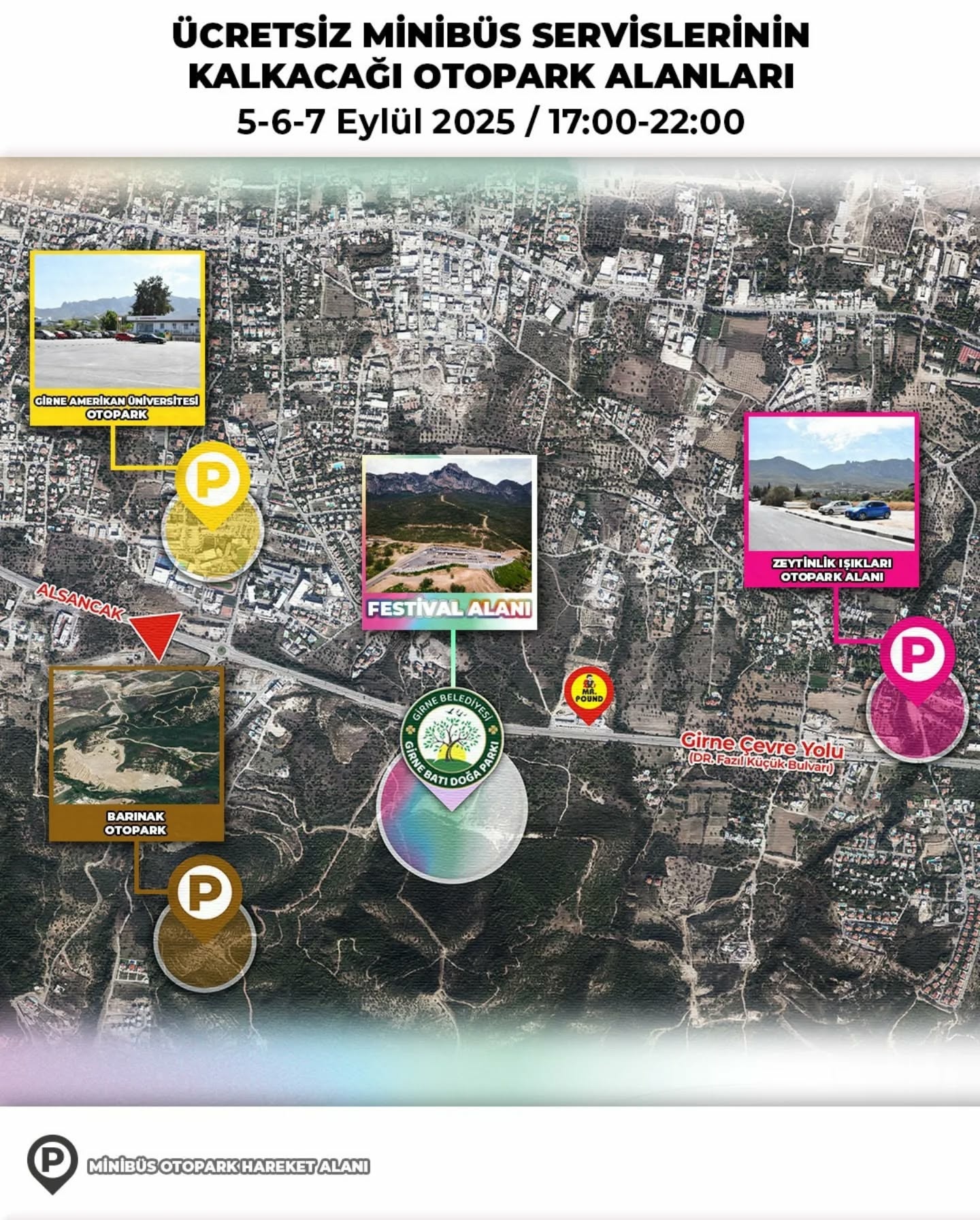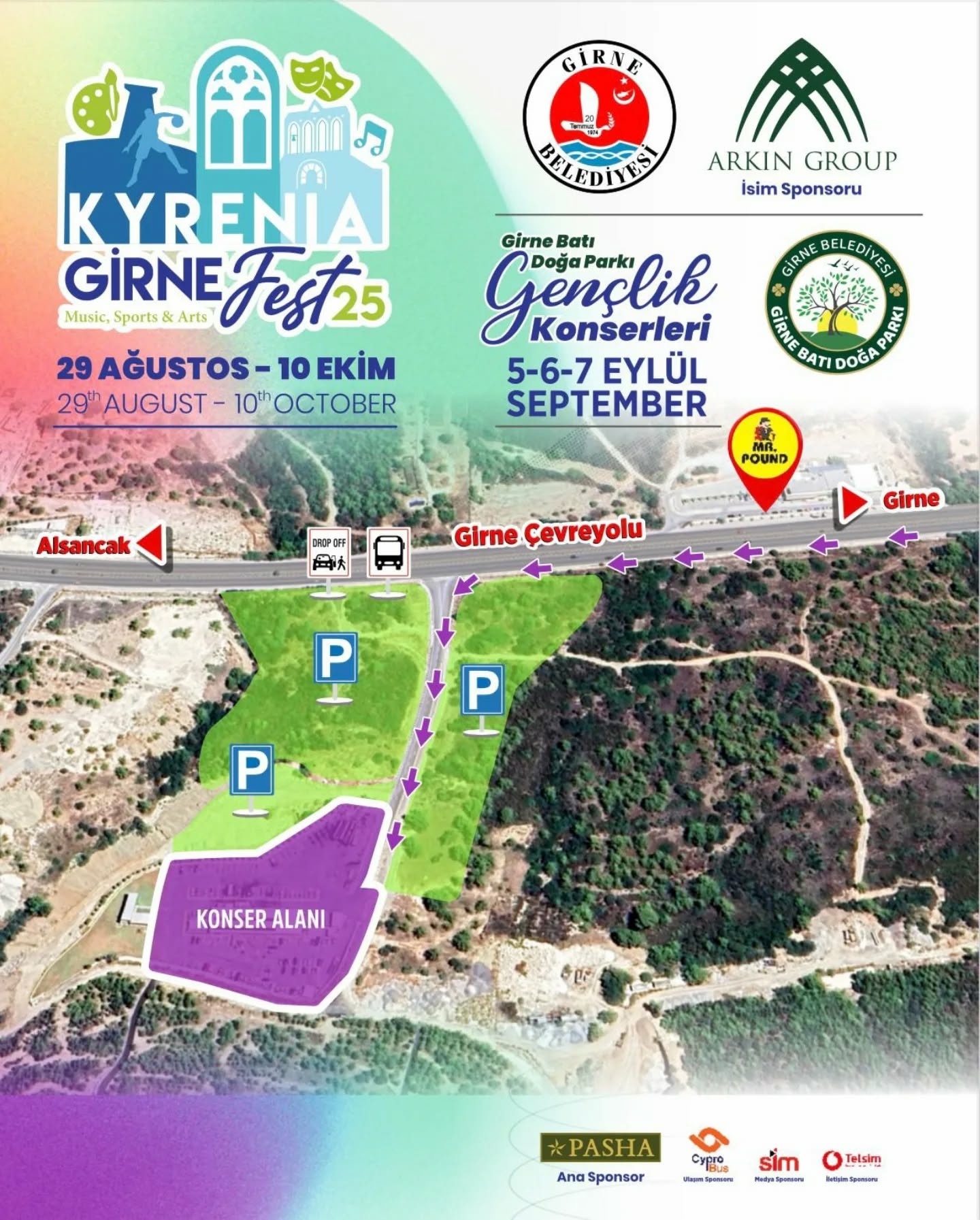 Girne Arkın Group Fest 25 kapsamında Girne Batı Doğa Parkı’nda 5-6-7 Eylül tarihlerinde gerçekleşecek Gençlik Konserleri için ücretsiz minibüs ve otobüs seferleri düzenlenecek.