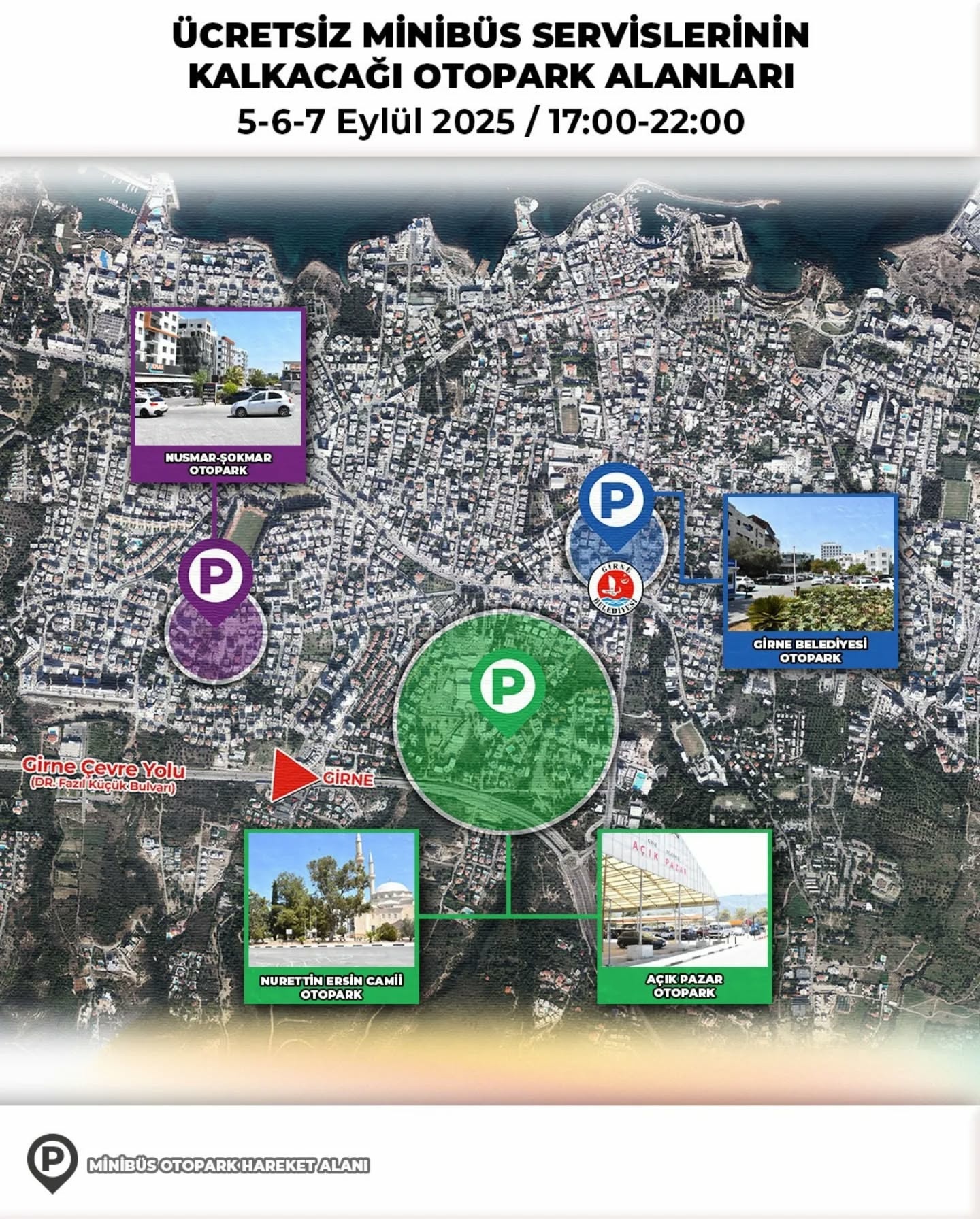 Ücretsiz minibüs servislerinin kalkacağı otopark alanları şunlar: