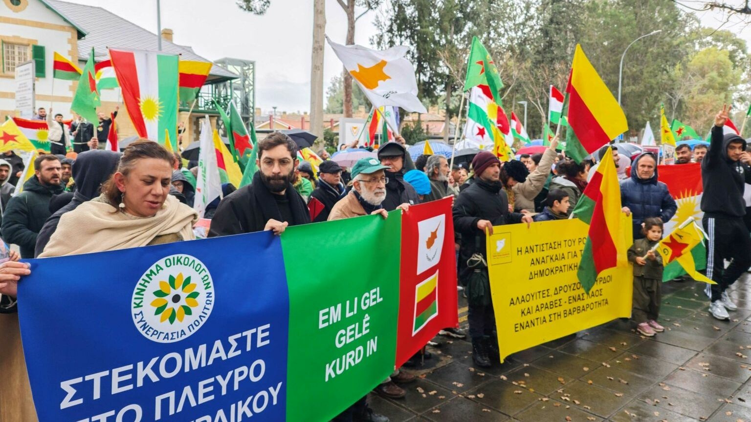 Güney Kıbrıs’ta PKK ve YPG destekçileri, Suriye’deki gelişmeleri protesto ederek Lefkoşa’da yürüdü. Avrupa Evi’nde kabul edilen grup, Suriye hükümetine verilen desteğin kesilmesini istedi.
