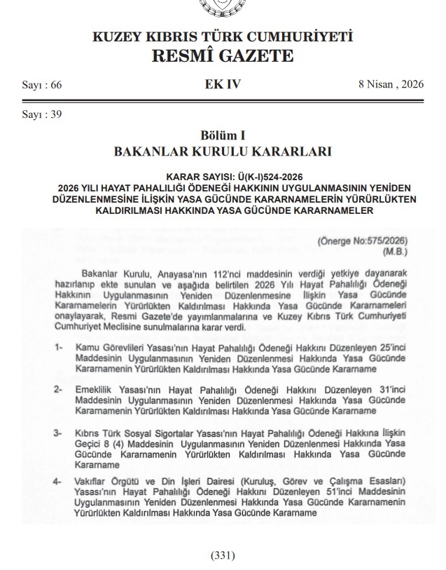 Kararnamede, Anayasa’nın devletin ekonomik ve sosyal görevlerine ilişkin hükümleri çerçevesinde, ekonomik koşullar ve bütçe imkanlarının dikkate alınmasının zorunlu olduğu vurgulandı. Bu doğrultuda, kamu görevlileri ve emeklilere yönelik hayat pahalılığı ödeneğinin yeniden düzenlenmesine ilişkin daha önce yapılan düzenlemelere yer verildi.