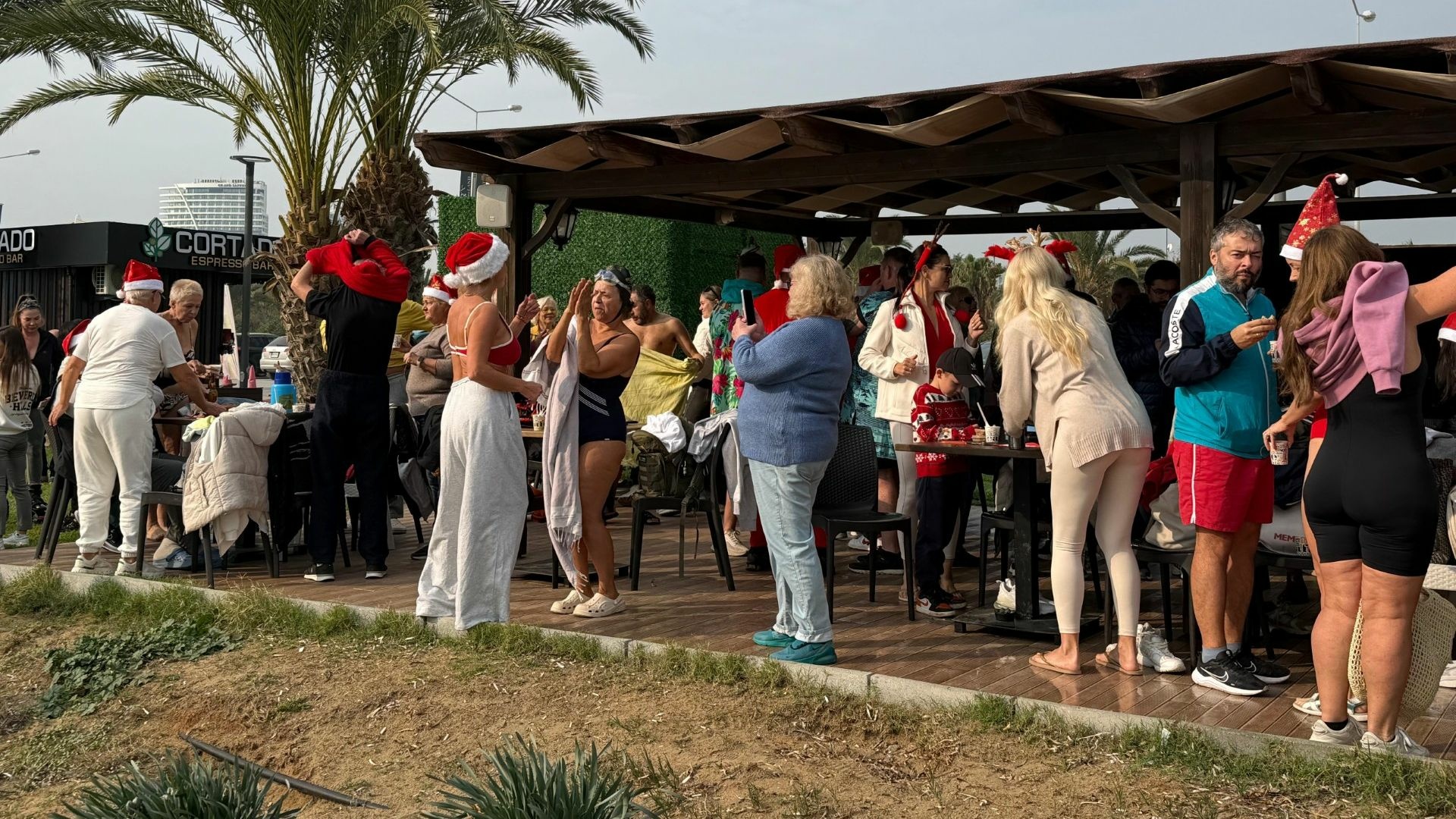 İskele'de geleneksel hale gelen Noel etkinliğinde soğuk havaya aldırmadan denize giren katılımcılar, toplanan 13 bin 840 TL ve 10 sterlini Kanser Hastalarına Yardım Derneği'ne bağışladı.