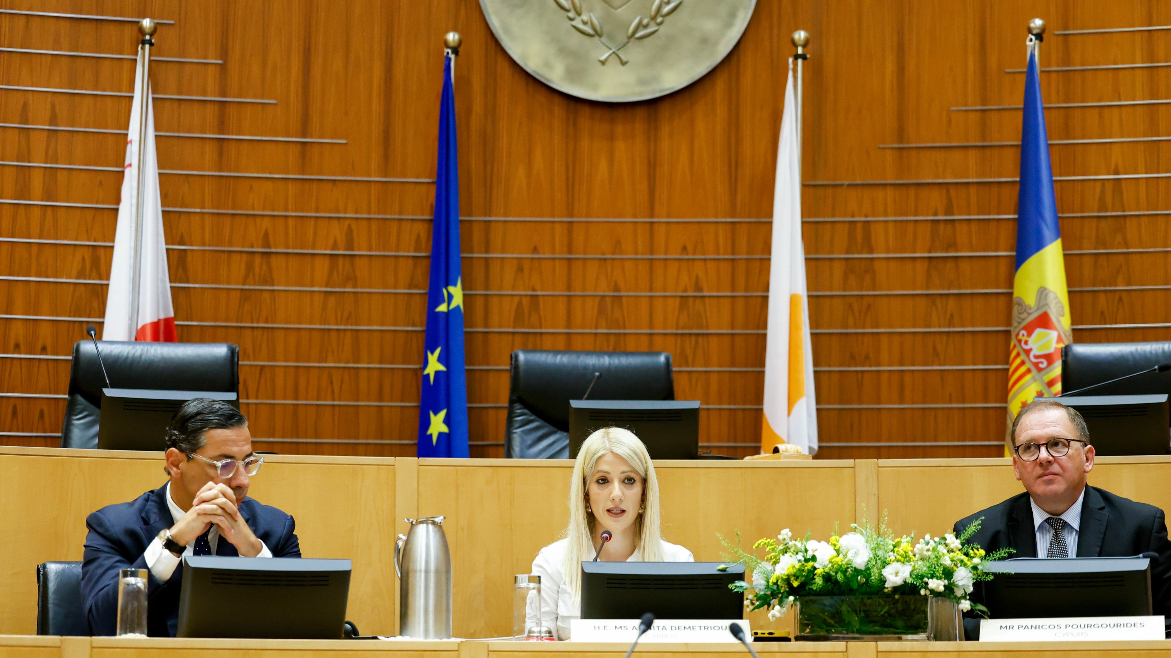Rum Temsilciler Meclisi Başkanı Annita Dimitriu ise konuşmasında, uluslararası hukukun ihlal edildiği çeşitli vakalarda uygulanan çifte standartları reddederek, Avrupa Birliği’nin (AB) çatışmaların çözümünde öncü bir rol üstlenmesi gerektiğini söyledi.