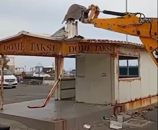 Girne Kordonboyu'nda, Dome Taksi Durağı'nın yıkılıp, engelli tuvaletinin de bulunacağı yeni durak binasını içeren projeye bugün başlandı.