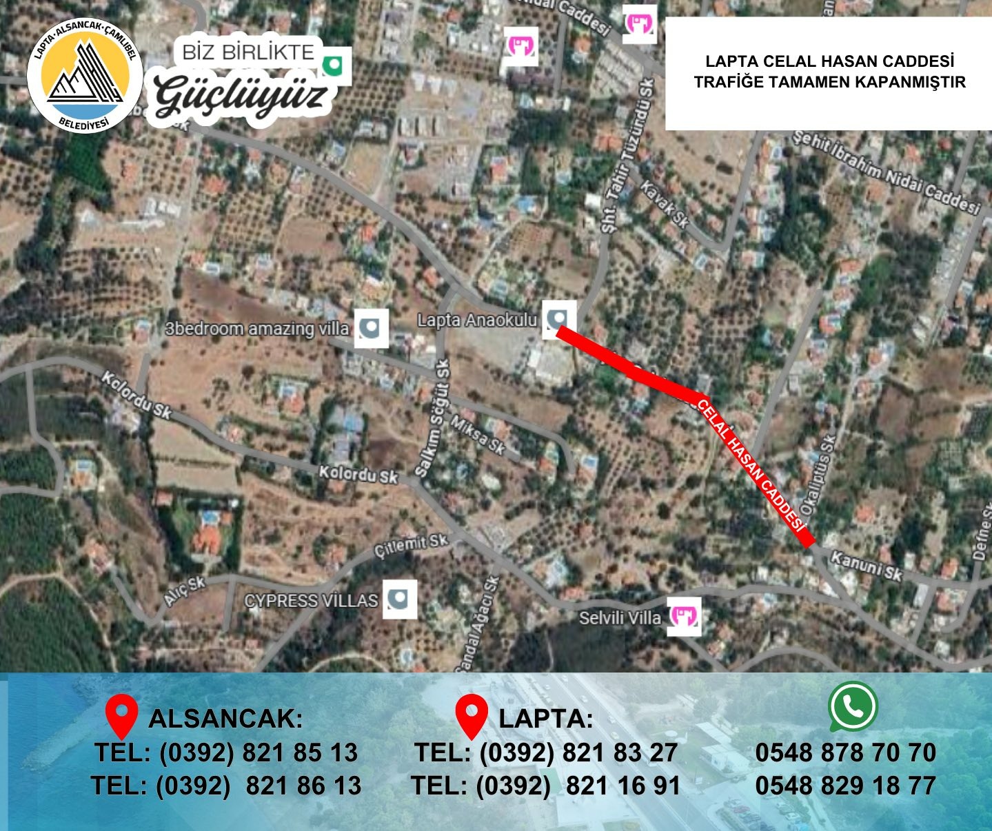 Asfalt kaplama çalışmaları nedeniyle Lapta Celal Hasan Caddesi trafiğe kapalı olacak.
