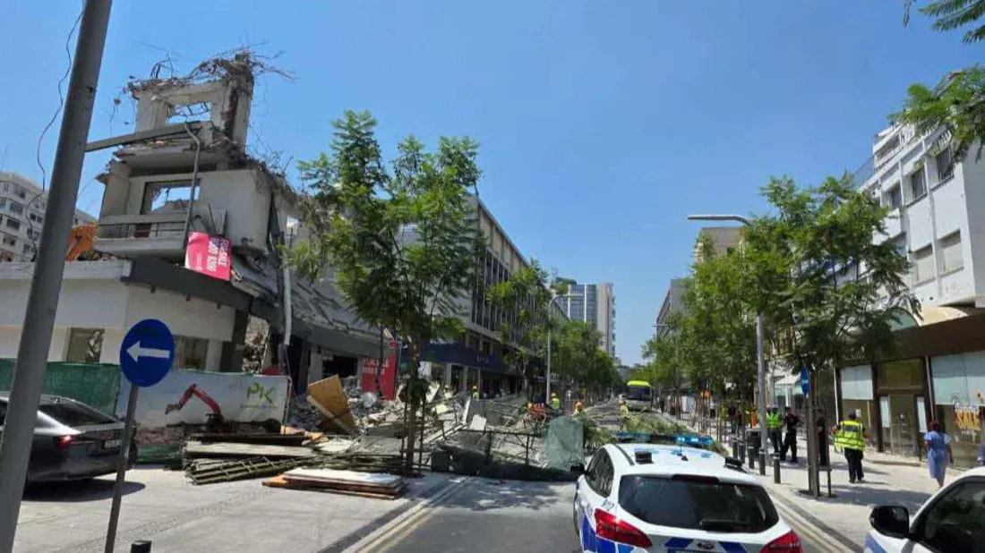 Güney Lefkoşa'nın işlek noktalarından biri olan Makarios Caddesi'nde yıkımı süren eski Lefkoşa Öğretmenler Tasarruf Bankası binasının bir kısmı çöktü.