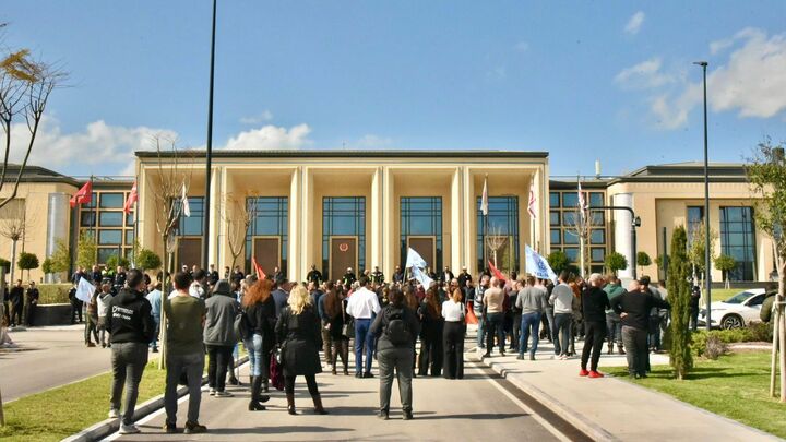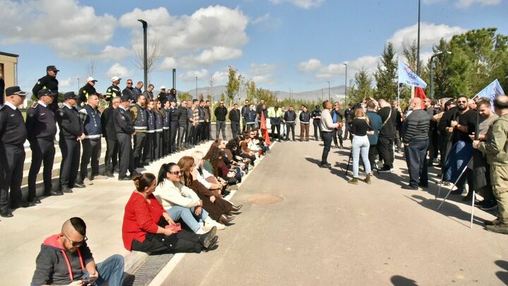 Cumhuriyetçi Türk Partisi (CTP) Genel Başkanı Sıla Usar İncirli, Meclis Genel Kurulu devam ederken, dışarıda eylem yapan sendikaların yanına geldi.
