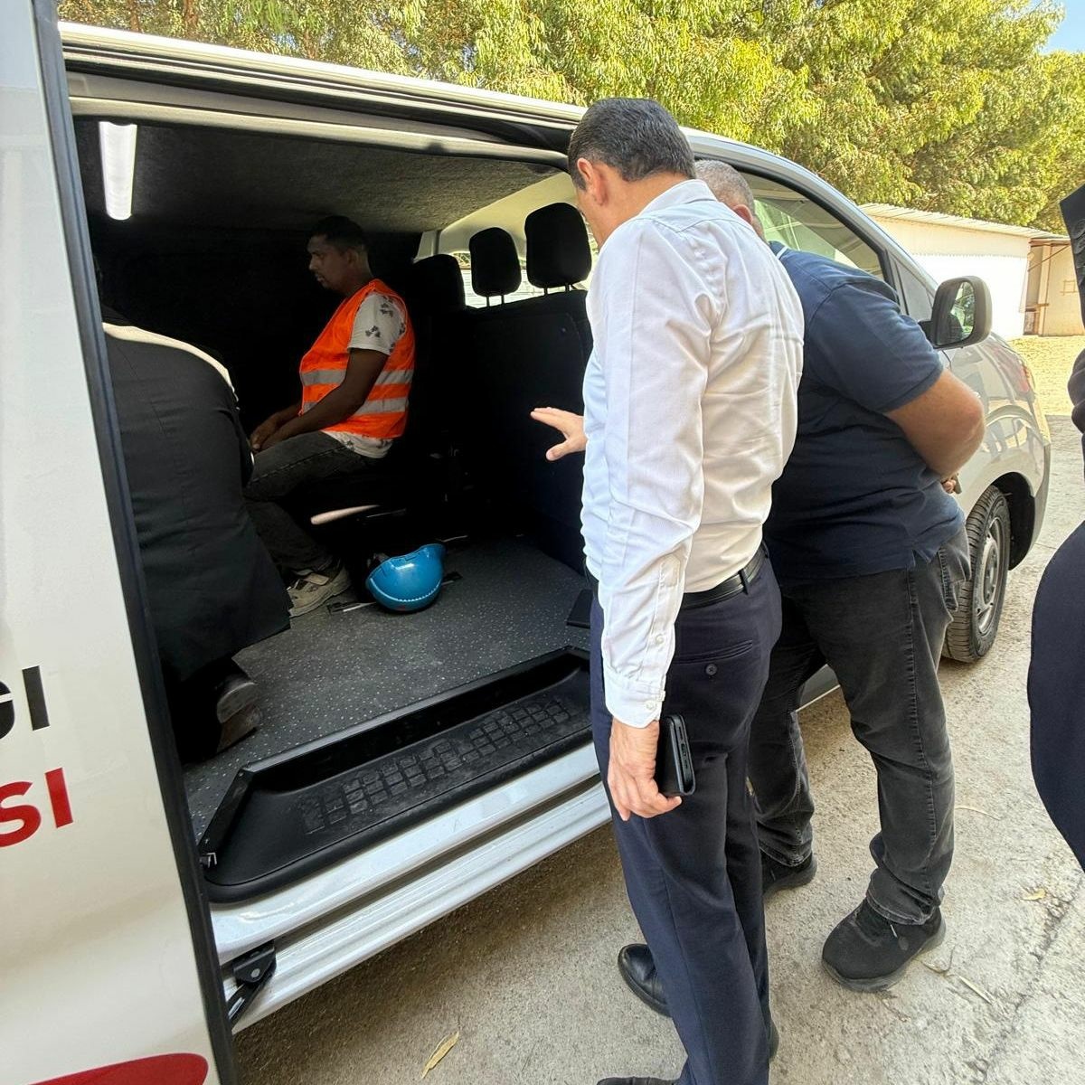 Göç Yönetim Merkezi'nin mobil denetim araçlarıyla denetim uygulamasının ilki, bugün Gaziveren'deki inşaat şantiyelerinde çalışanlara yapıldı.