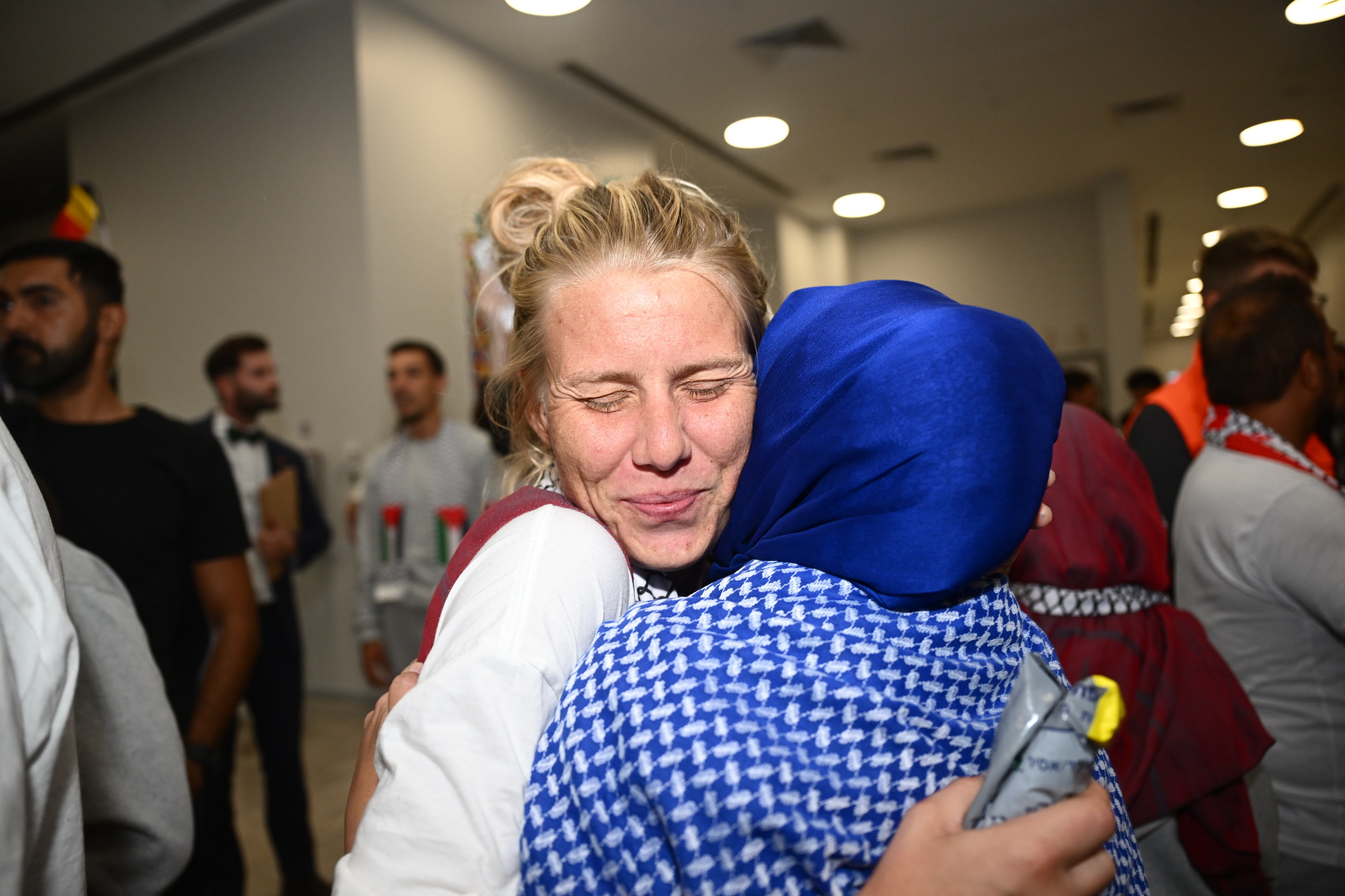 Özgürlük Filosu Koalisyonu'na ait teknelerde yer alan 18'i Türk, 76'sı yabancı uyruklu toplam 94 aktivist, İstanbul Havalimanı VIP Salonu'nda aileleri, bazı yetkililer ve çok sayıda vatandaş tarafından karşılandı.