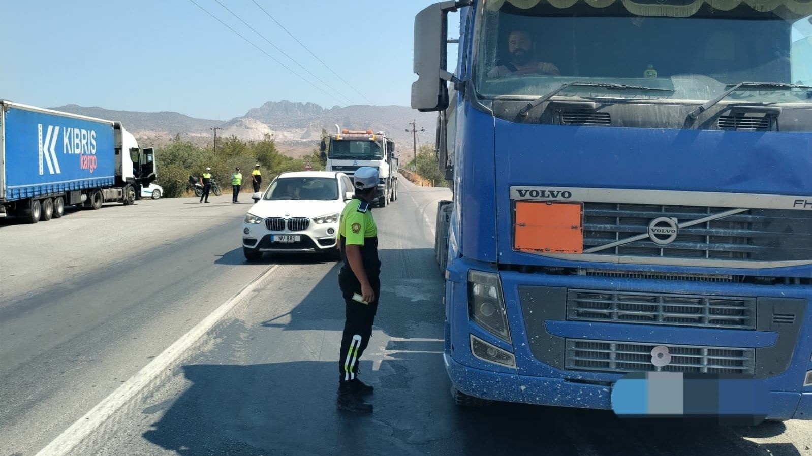 Değirmenlik-Girne Anayolu'nda yapılan trafik denetimlerinde, tehlikeli yük taşımak ve yıpranmış lastik kullanmak suçlarından 6 kamyon sürücüsü rapor edilerek haklarında yasal işlem başlatıldı.