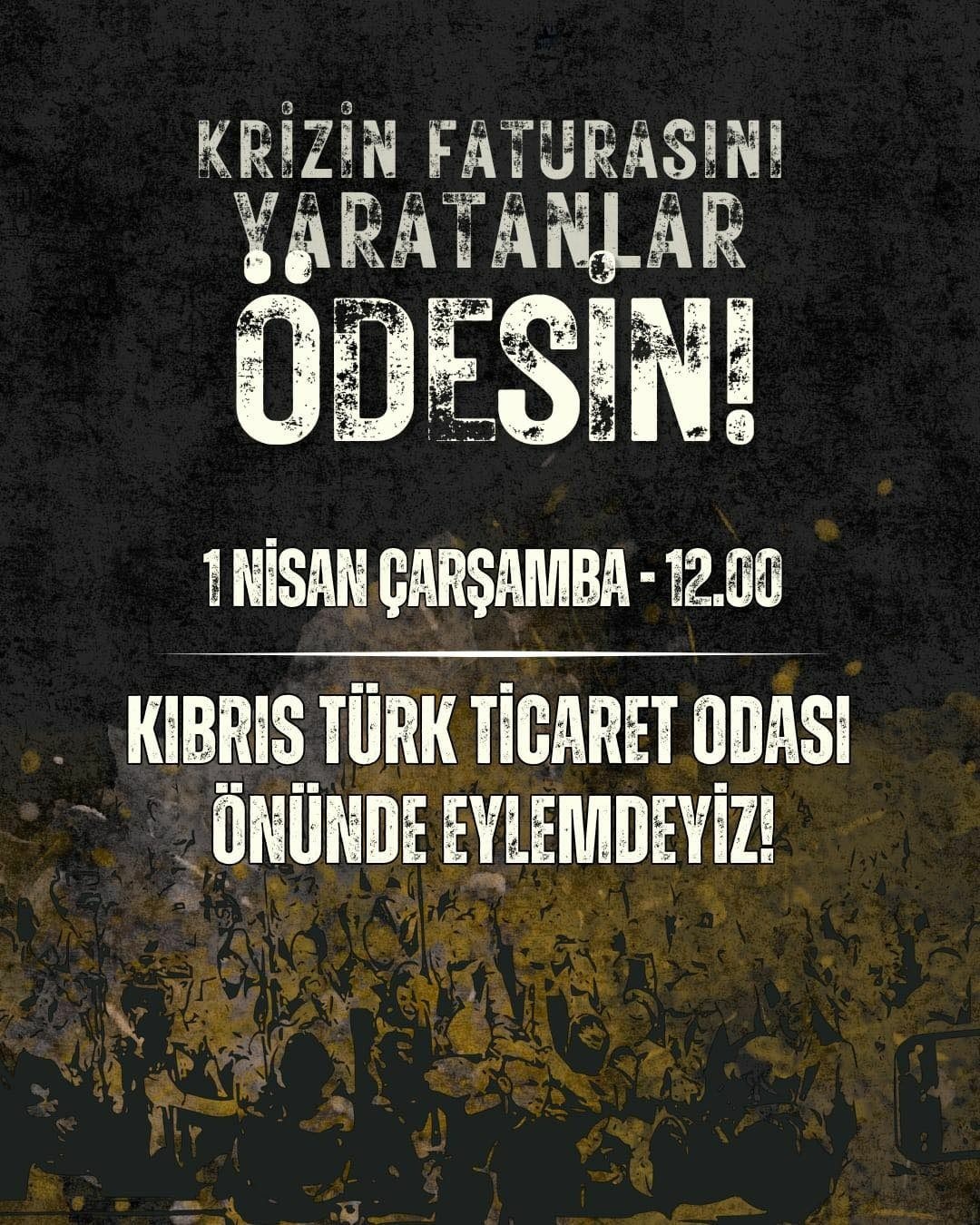 Eyleme ilişkin yapılan ortak açıklamada, "Ülkedeki yolsuzluk, hırsızlık, rüşvet, sahtecilik konularında tek bir söz söylemeyen ancak söz konusu çalışan hakları olduğu zaman ortaya çıkan emek ve emekçi düşmanı Kıbrıs Türk Ticaret Odası önünde protesto eylemi gerçekleştirilecektir." denildi.