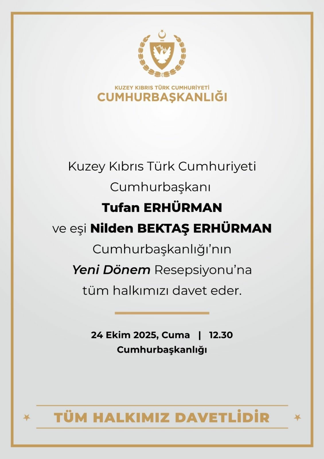 Törenin ardından, Erhürman ve eşi Nilden Bektaş Erhürman, bugün Cumhurbaşkanlığı'nda Yeni Dönem Resepsiyonu düzenleyecek. Saat 12.30'da Cumhurbaşkanlığı'nda yer alacak resepsiyon halka açık olacak.