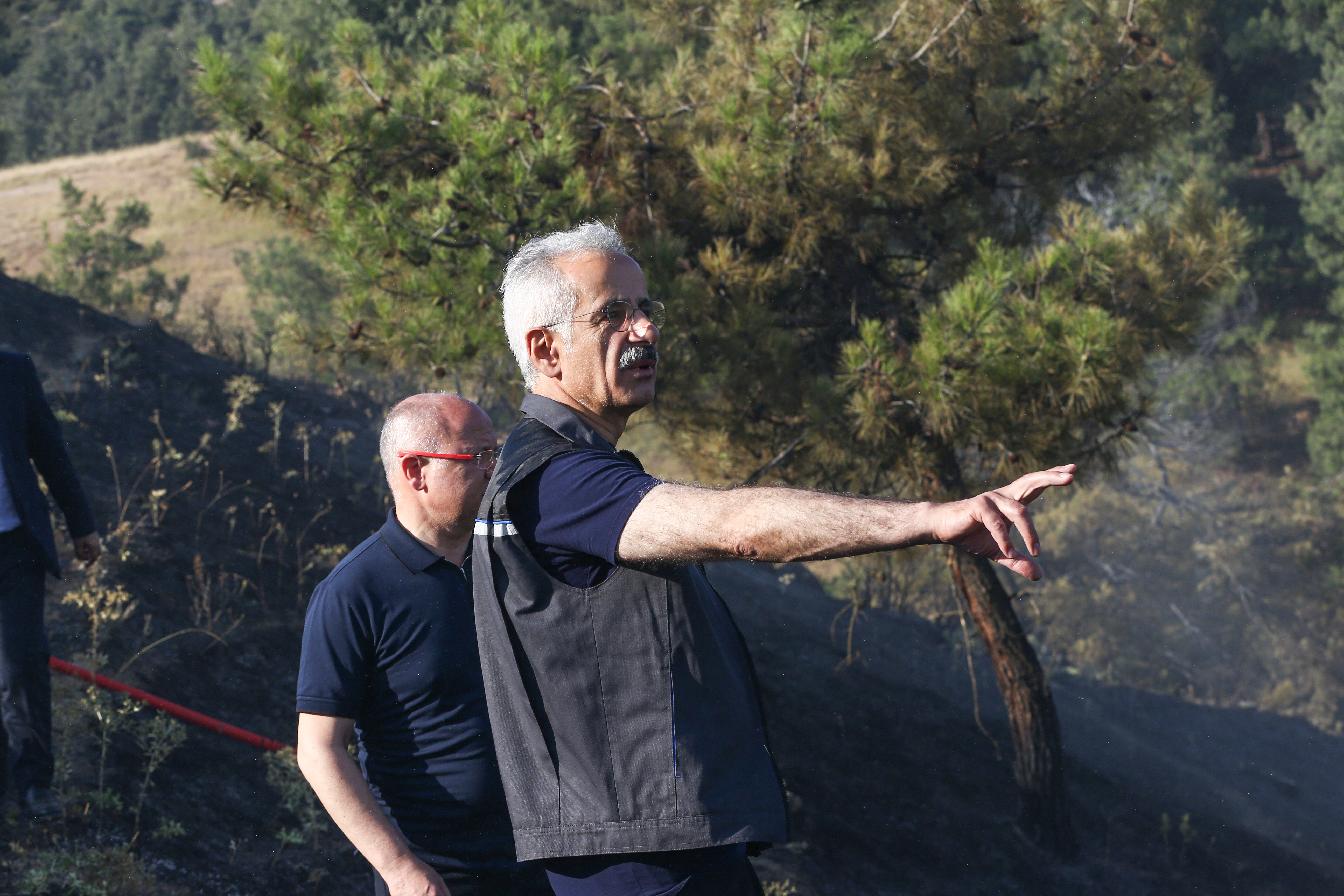 TC Ulaştırma ve Altyapı Bakanı Abdulkadir Uraloğlu, Bursa'nın Gürsu ilçesindeki yangın bölgesinde incelemede bulundu.