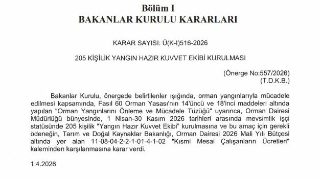 Ekip için gerekli mali kaynak ise Orman Dairesi'nin 2026 Mali Yılı bütçesinde yer alan "Kısmi Mesai Çalışanların Ücretleri" kaleminden karşılanacak.