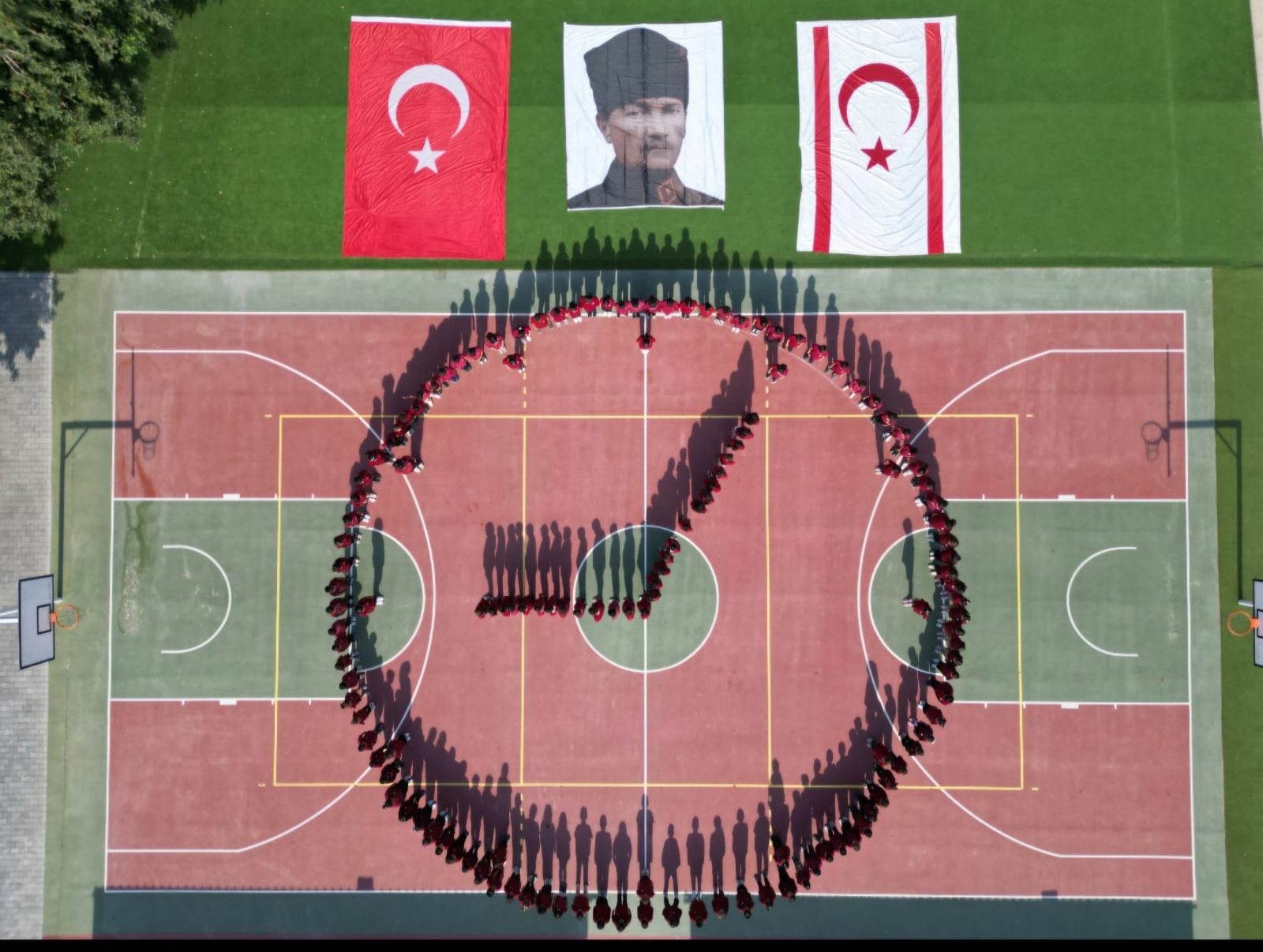 Yaklaşık 150 öğrencinin yer aldığı çalışma, Atatürk’e duyulan sevgi, saygı ve minneti yansıtıyor.