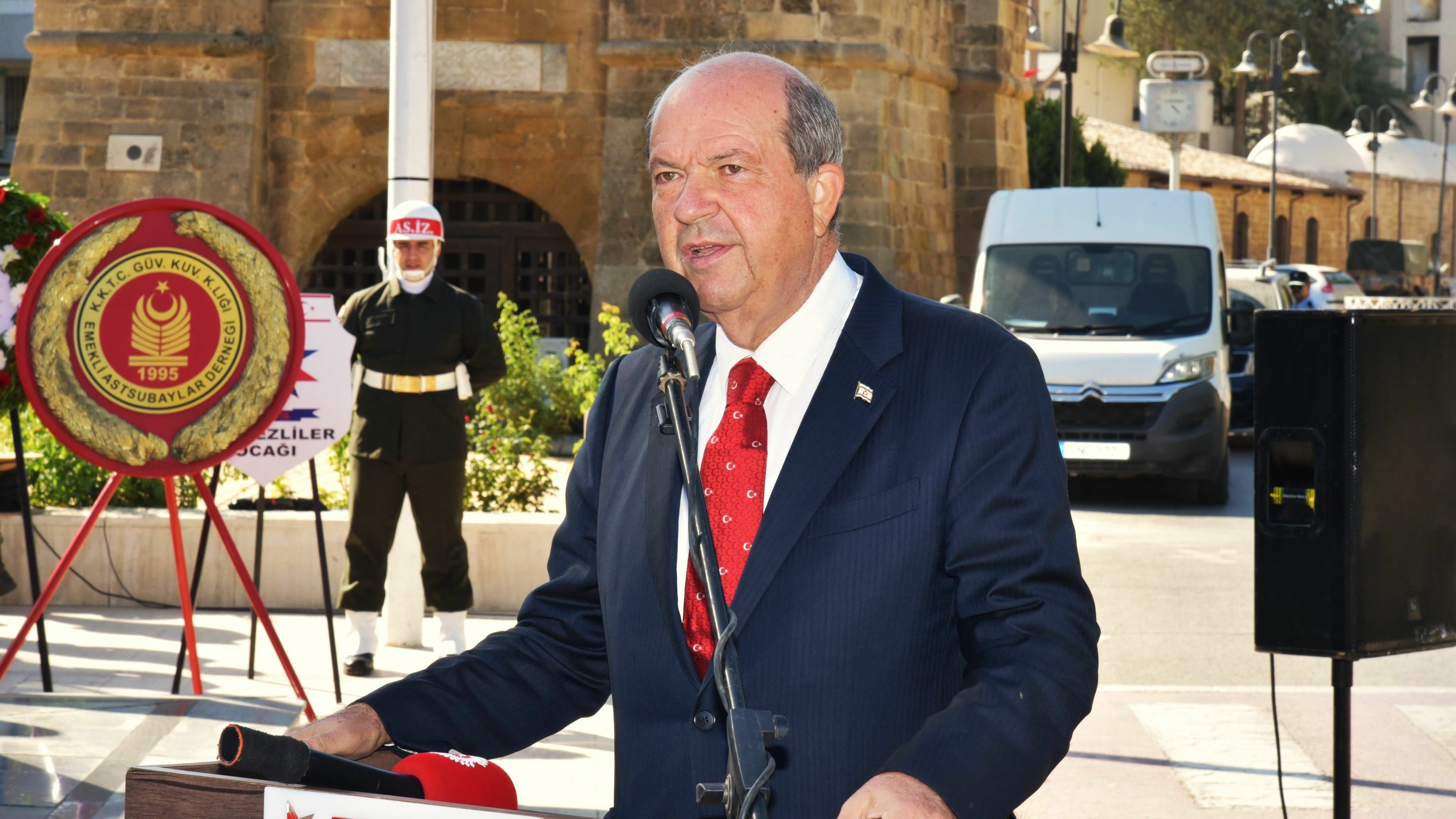 Cumhurbaşkanı Ersin Tatar törende yaptığı konuşmada, gazileri minnetle anarak, geçmişte yapılan fedakarlıklara işaret etti. 1974 Kıbrıs Barış Harekatı’nda Mehmetçikler ile Mücahitlerin kahramanlığı ve yazdıkları destanla Kıbrıs Türk halkının bağımsızlığına ve özgürlüğüne kavuştuğunu ifade eden Tatar, 1983 yılında KKTC’nin ilan edilmesiyle yola devam edildiğini söyledi.
