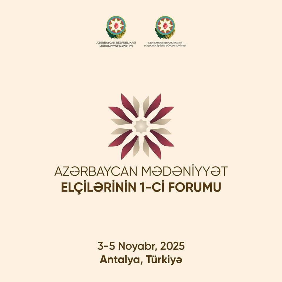 3–5 Kasım 2025 tarihleri arasında Azerbaycan Kültür Elçilerinin I'inci Forumu, Azerbaycan Cumhuriyeti Kültür Bakanlığı ve Diasporla İş Üzere Devlet Komitesi’nin organizasyonuyla Türkiye’nin Antalya şehrinde gerçekleştirilecek.