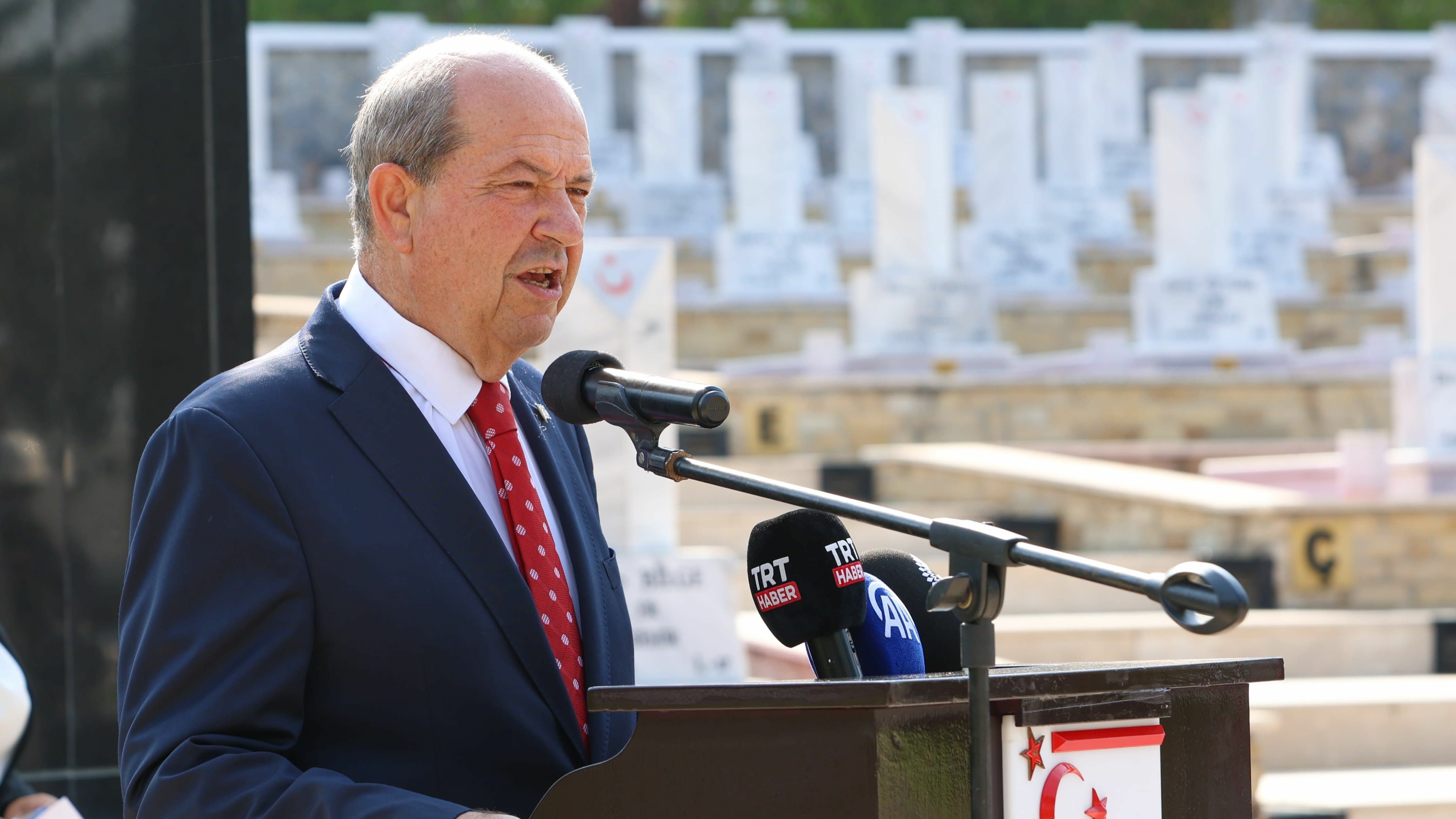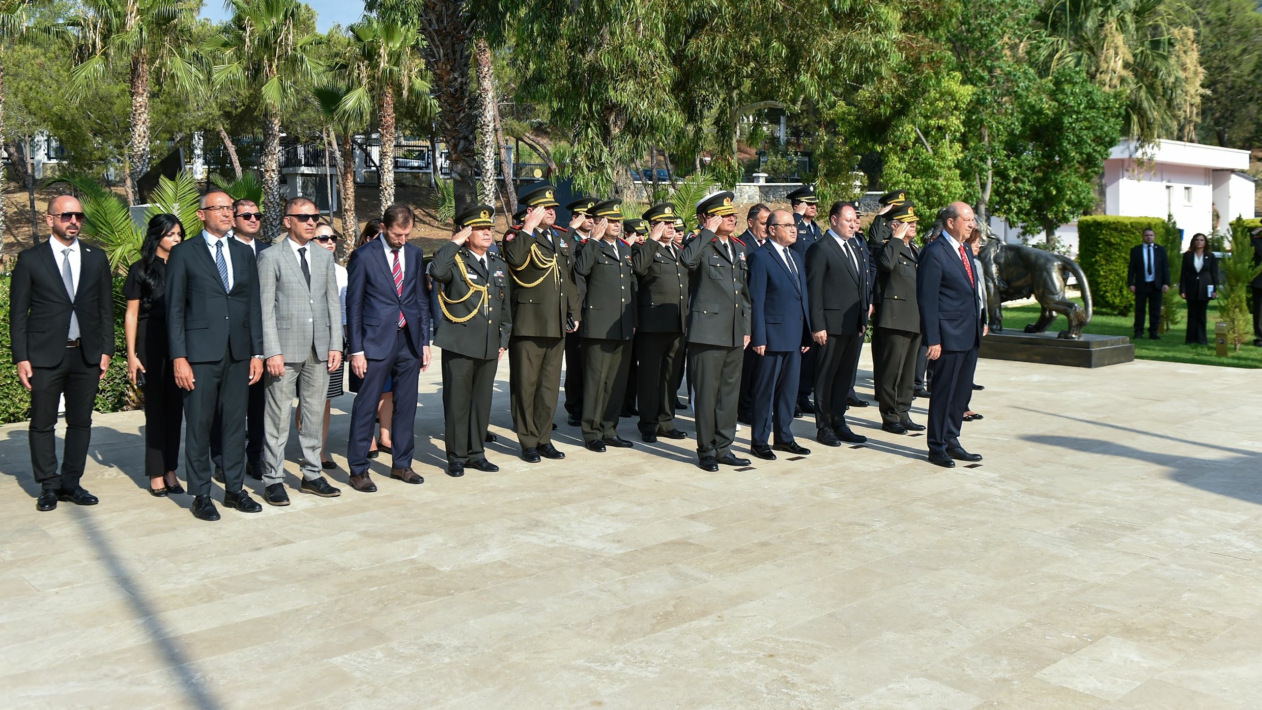 Anıta çelenkler sunulmasıyla başlayan tören saygı duruşu ve İstiklal Marşı eşliğinde bayrakların göndere çekilmesiyle devam etti. Ardından Cumhurbaşkanı Ersin Tatar ile TC Lefkoşa Büyükelçisi Ali Murat Başçeri birer konuşma yaptı.