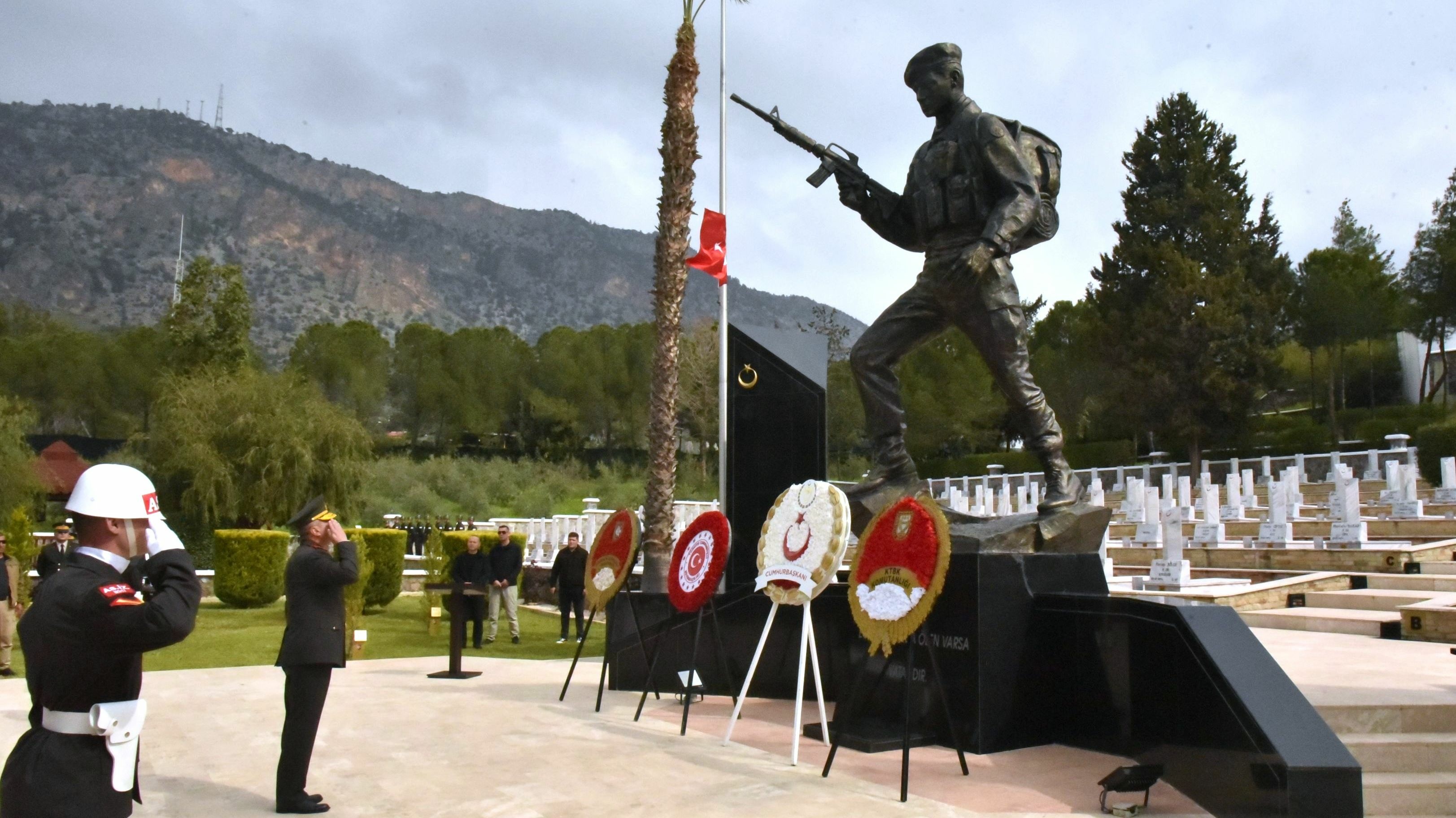 Çelenklerin şehitliğe sunulmasıyla başlayan tören, saygı duruşu ve saygı atışının ardından İstiklal Marşı eşliğinde bayrakların göndere çekilmesiyle devam etti. Törende, Kıbrıs Türk Barış Kuvvetleri Komutanlığı’ndan Üsteğmen Serkan Sarıakçalı günün anlam ve önemini belirten konuşmayı yaptı.