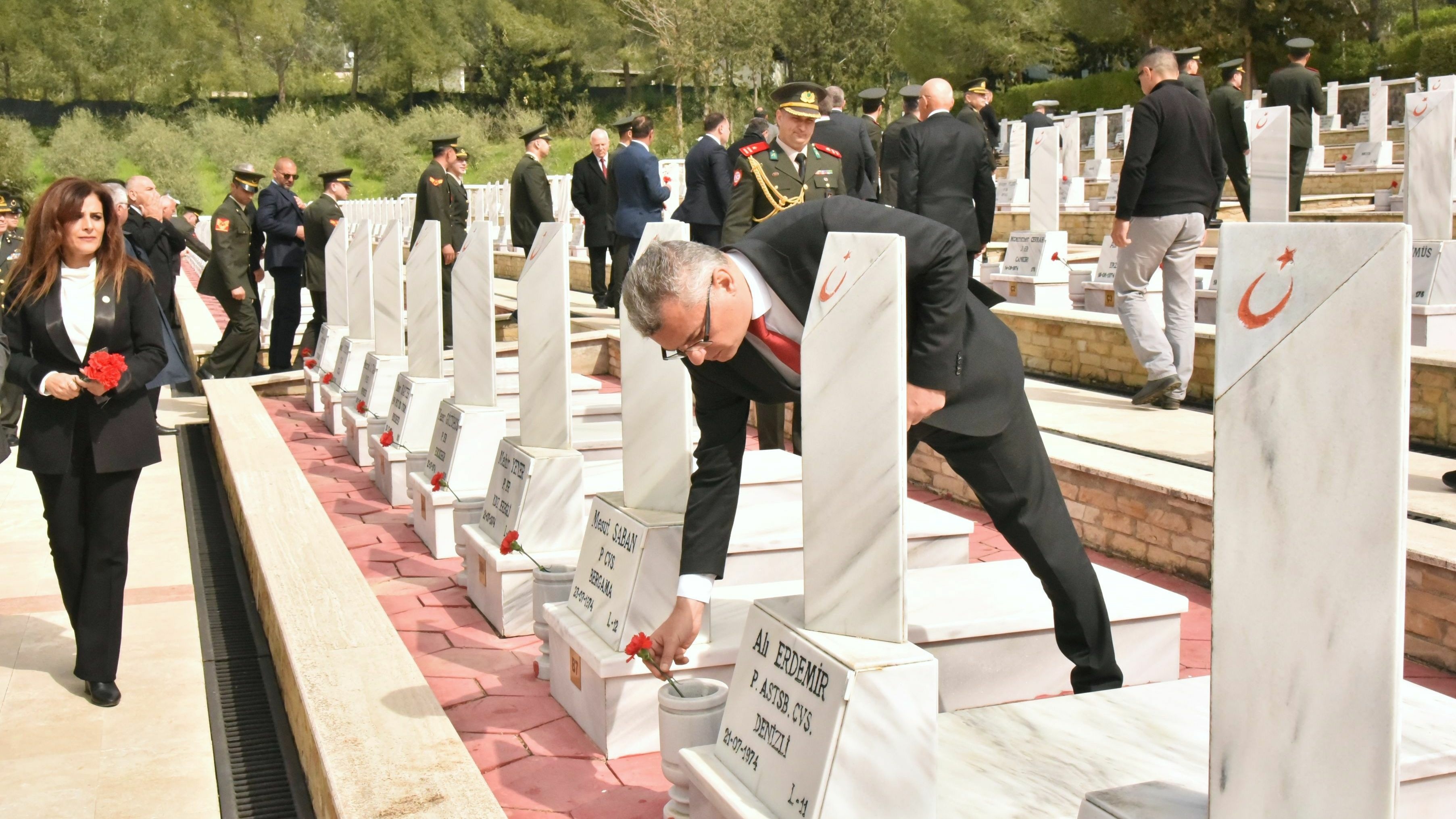 Cumhurbaşkanı Erhürman’ın konuşmasının ardından şehit kabirleri ziyaret edilerek çiçekler sunuldu.