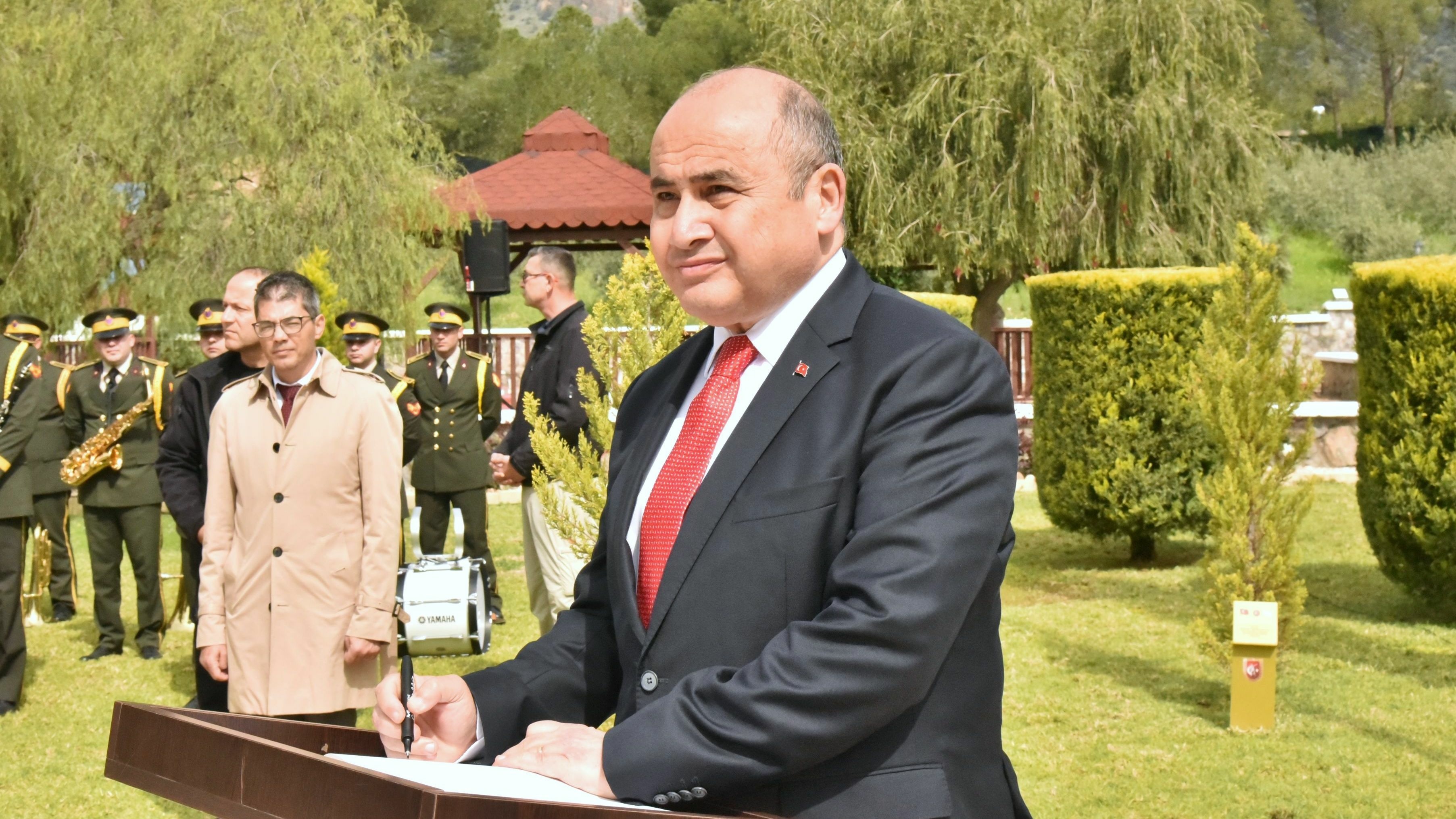 Bugün milletimizin varlığına ve bağımsızlığına kasteden güçlere karşı göğsünü siper eden siz kahramanlarımızı saygı, rahmet ve derin bir minnet duygusuyla anmak için huzurunuzdayız. Uğruna can verdiğiniz bu topraklarda emanetinizin bilinciyle faaliyetlerimizi yürütüyoruz.