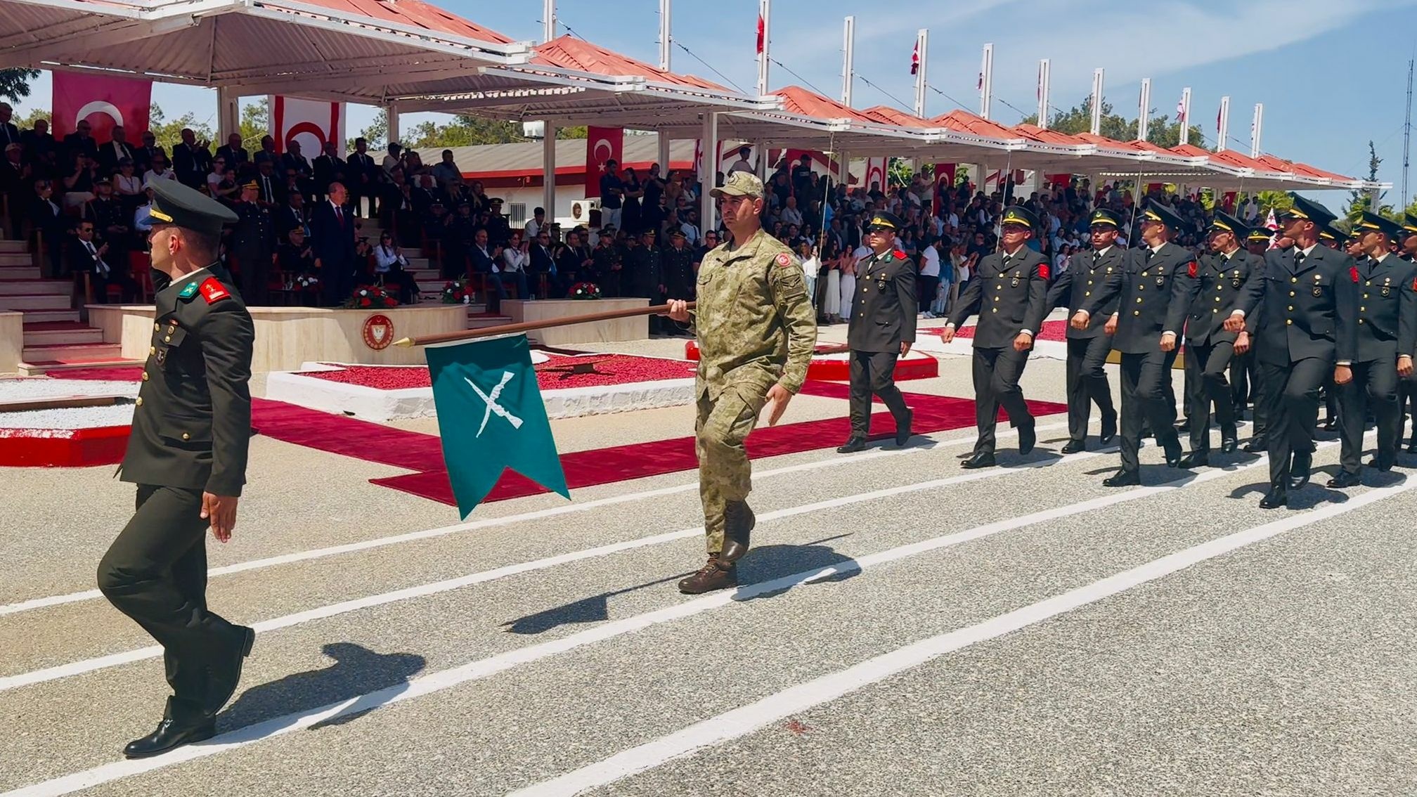 Yemin töreni; Güvenlik Kuvvetleri Komutanı Tümgeneral İlker Görgülü ve Cumhurbaşkanı Ersin Tatar’ın konuşmalarının ardından Mücahitler Marşı eşliğinde yapılan tören geçişiyle sona erdi.