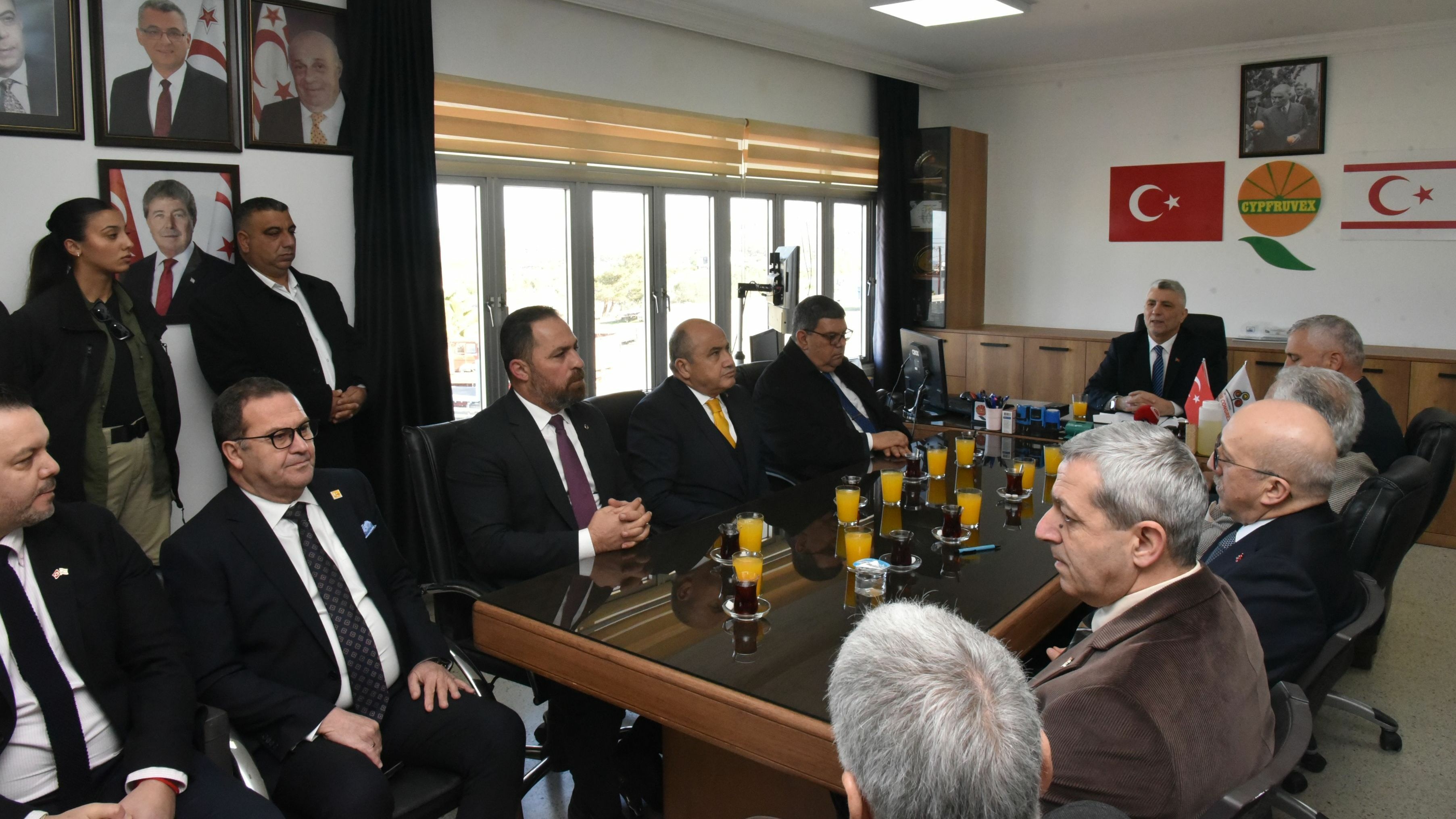 Ziyarete, TC Lefkoşa Büyükelçisi Ali Murat Başçeri'nin yanı sıra Maliye Bakanı Özdemir Berova, Ekonomi ve Enerji Bakanı Olgun Amcaoğlu, Tarım ve Doğal Kaynaklar Bakanı Hüseyin Çavuş, Kalkınma ve Ekonomik İşbirliği (KEİ) Ofisi Koordinatörü Erol Öz, Türkiye Odalar ve Borsalar Birliği (TOBB) yetkilileri, Kıbrıs Türk Ticaret Odası temsilcileri ile Cypruvex Yönetim Kurulu üyeleri katıldı.