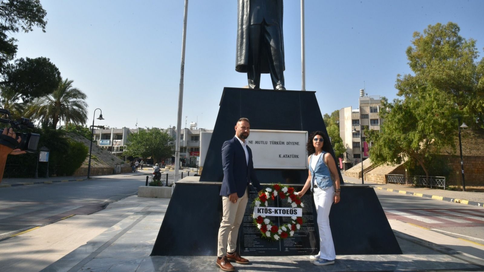 Öğretmen sendikaları, davanın duruşması öncesinde Girne Kapısı'ndaki Atatürk büstüne çelenk bıraktı, saygı duruşunda bulundu.
