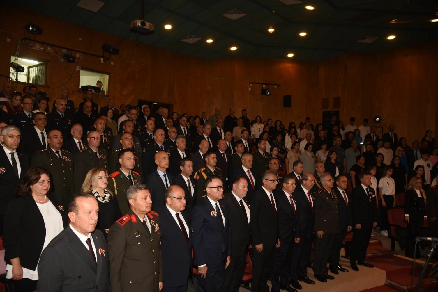 Saygı duruşu ve İstiklal Marşı ile başlayan programda, Cumhurbaşkanı Tufan Erhürman, Milli Eğitim Bakanı Nazım Çavuşoğlu, T.C. Lefkoşa Büyükelçiliği adına Hukuk Müşaviri Gülşah Durna Akay ve Kıbrıs Türk Barış Kuvvetleri Komutanlığı adına Üsteğmen Emrem Yılmaz konuşma yaptı.