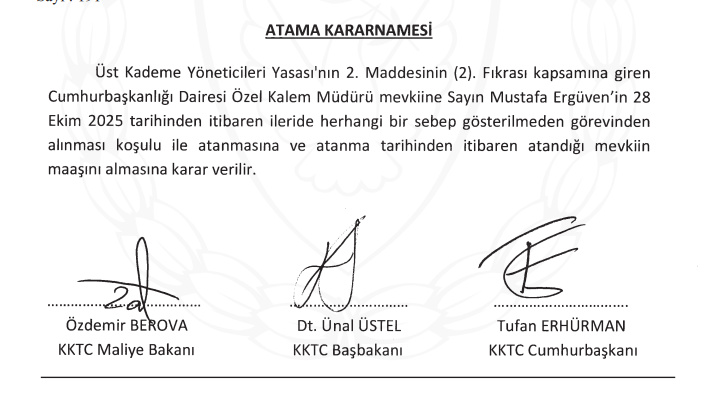 Erhürman döneminin ilk ''resmi'' atama ve görevden almaları gerçekleşti